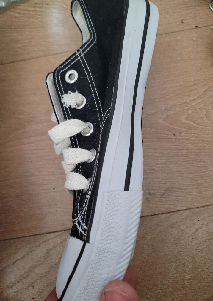 Black Converse Airwalk canvas sneakers with white laces. White soles with a black stripe. Perfect for casual outfits, these shoes are great for running errands or a relaxing walk. Great for all genders! Size 8.5 **** Cash Only **** **** Pickup Only **** **** No E-transfers **** **** Serious Inquiries Only / Serious Offers Only ****