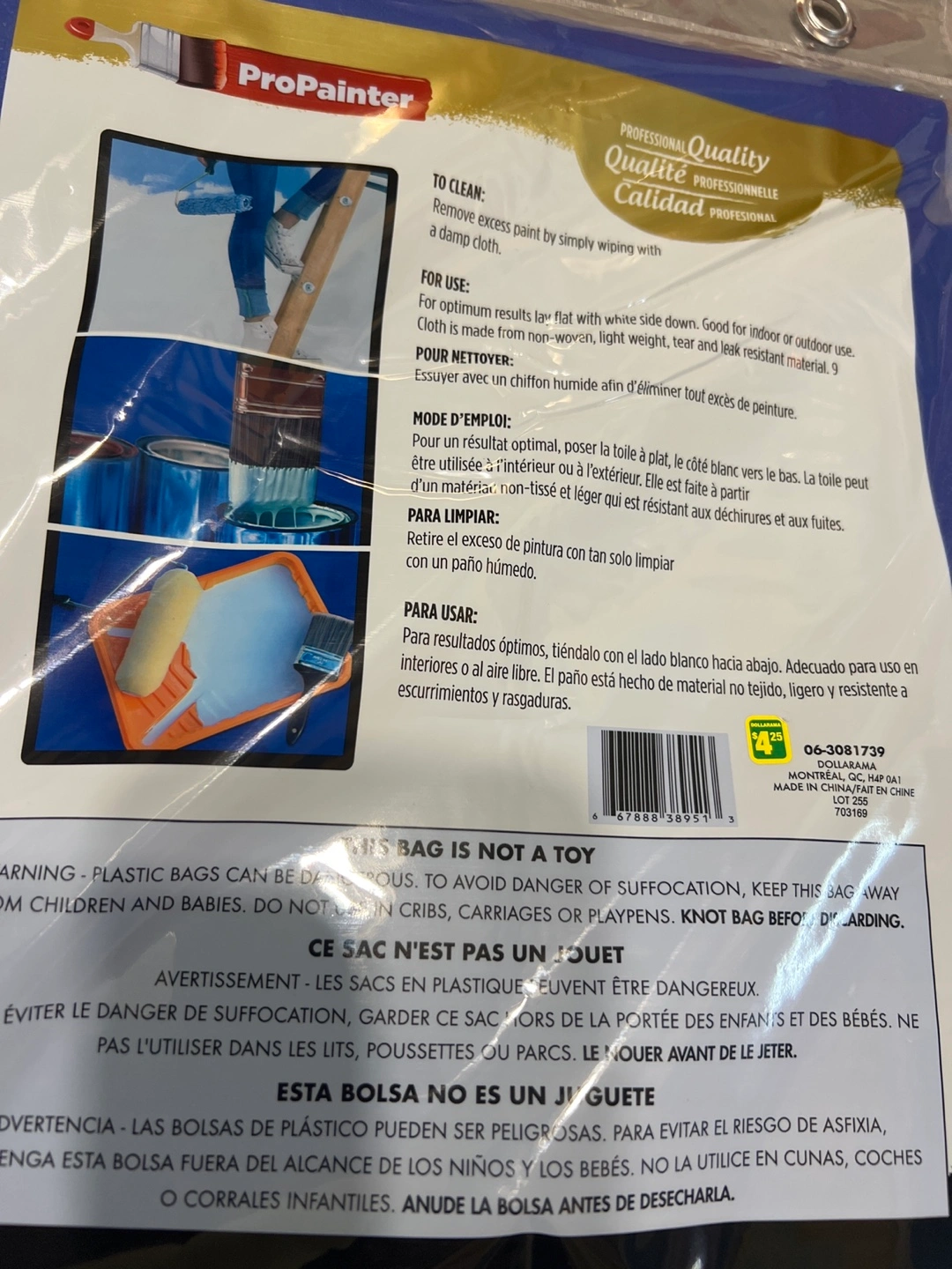 - Dimensions4x10 drop cloth , 6x8 +10x10.