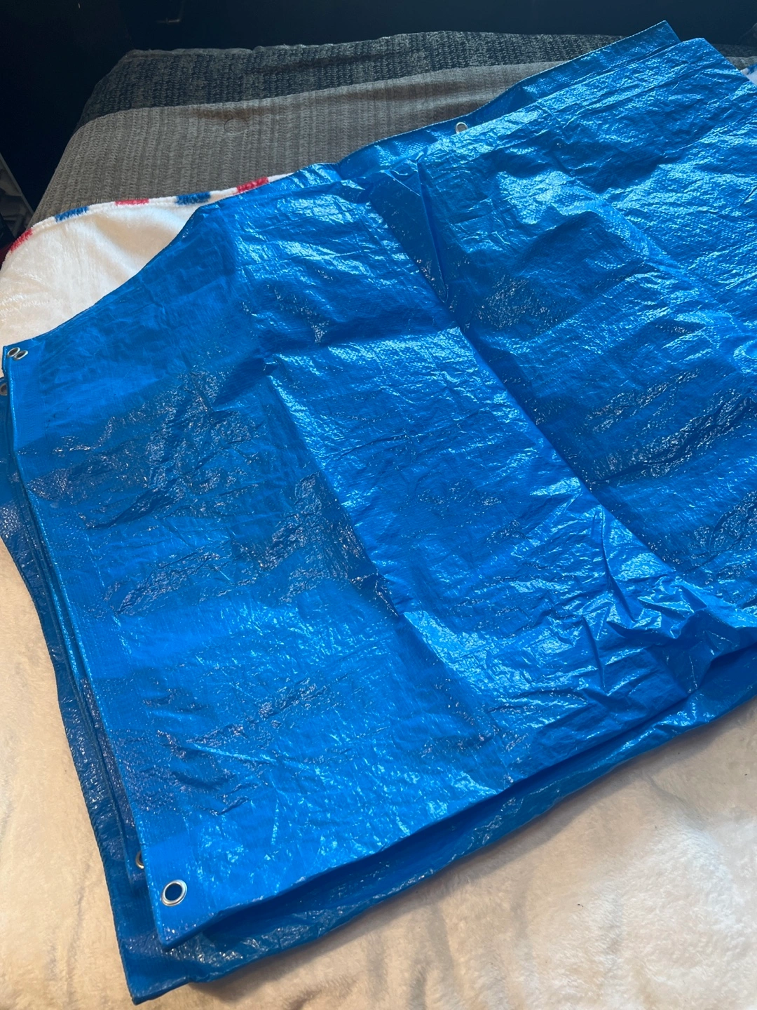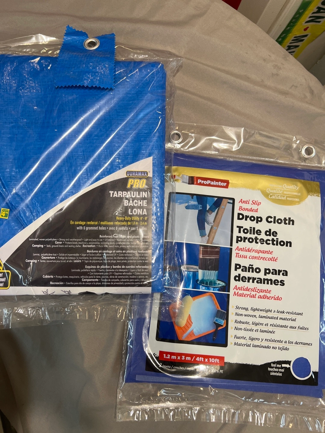 Take all Three 10.00 Retal 4.25 +tax both band new. 10x10 with grommets. Plus two brand new. Here are some lovely, protective tarps to add to your collection. You can use them to protect your belongings during a calm and relaxing painting day. One is blue and the other is a drop cloth.