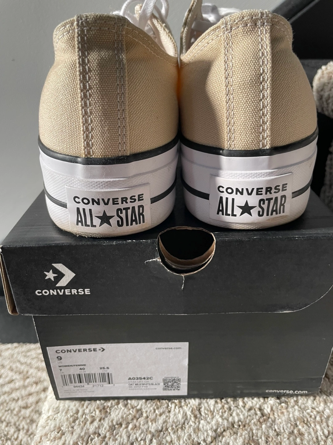 Women’s Converse Chuck Taylor All Star Lift Platform Low Top. Oat Milk. Size 9. $45 firm Like new - worn twice. Reg. Price $85 +HST