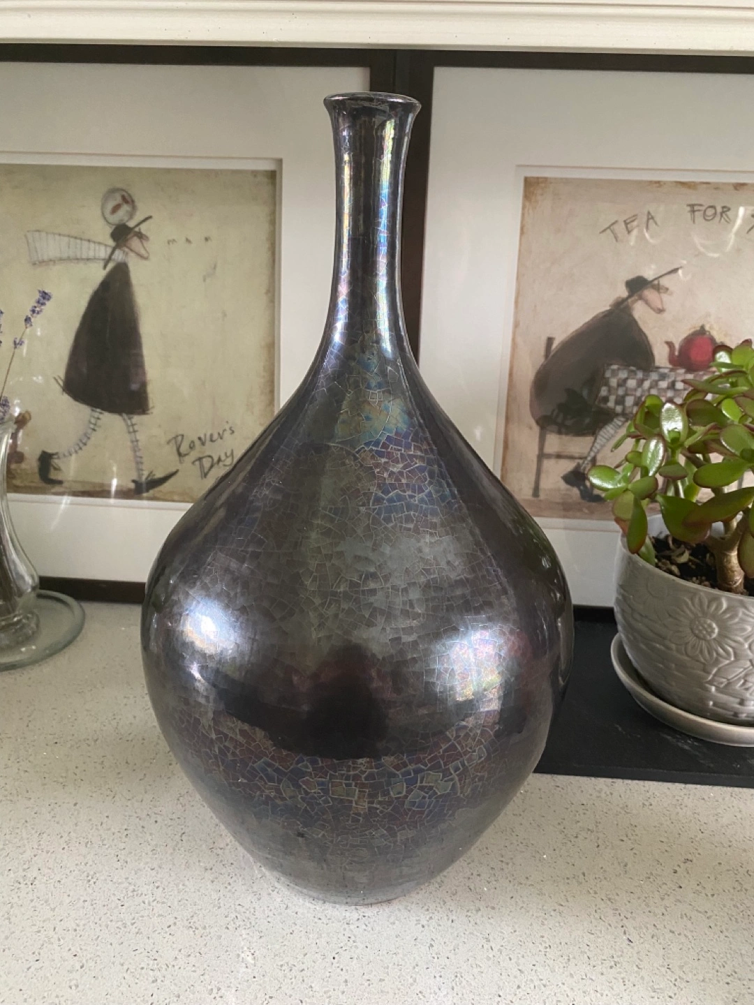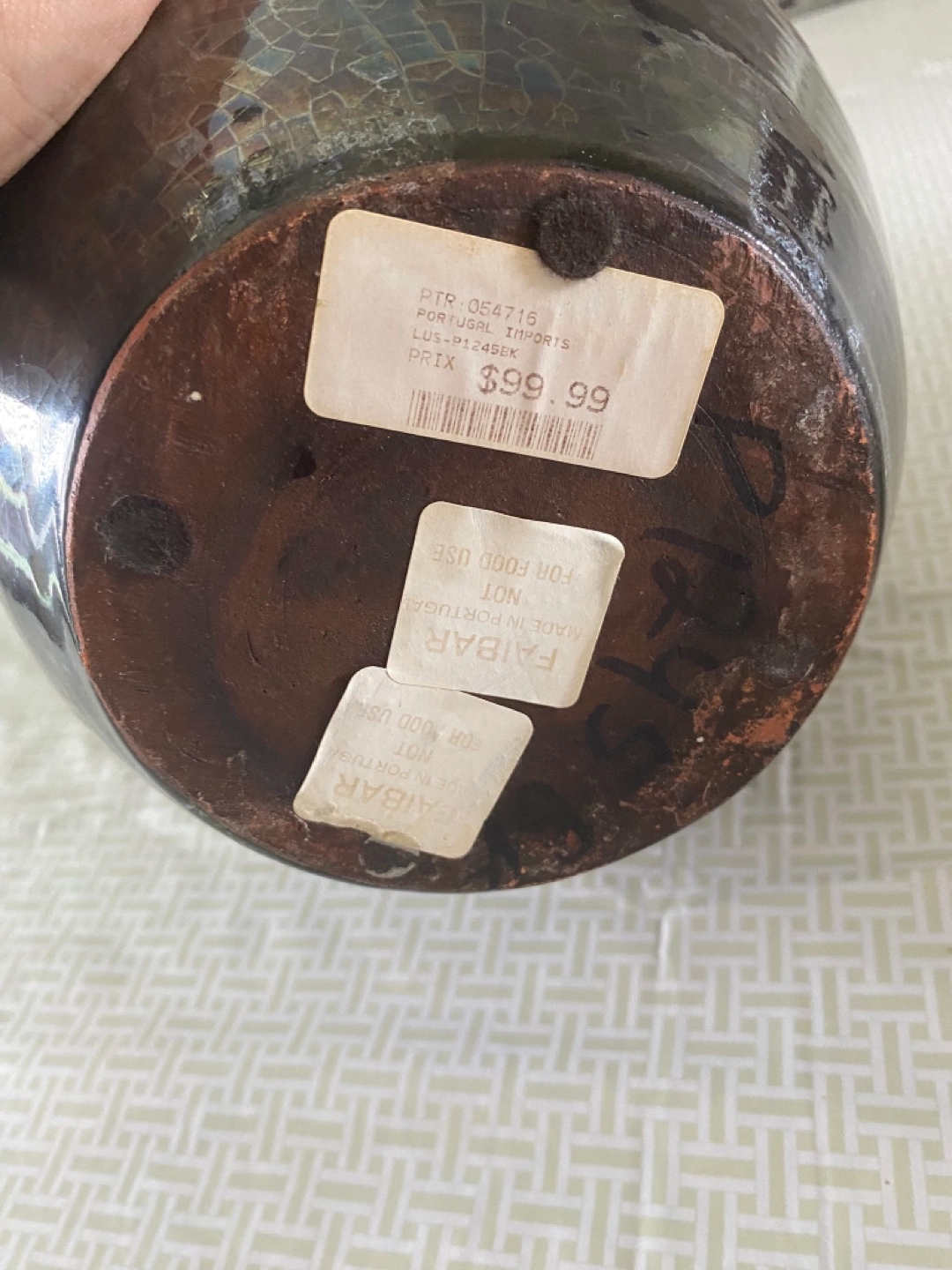 Beautiful vase, finished in a dark, textured glaze. I paid this $100 and it’s imported from Portugal.