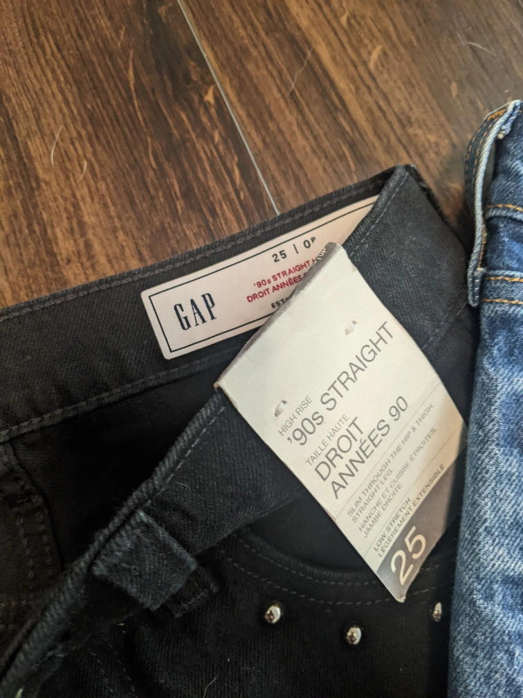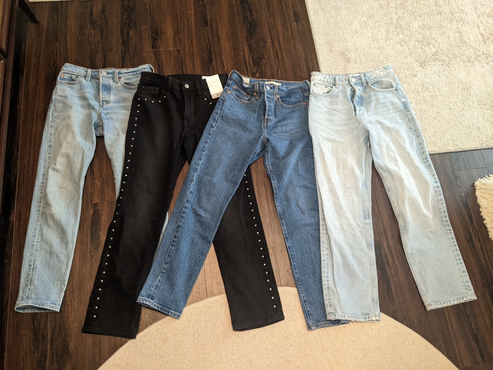 set of 4 pants 2 pairs of Levi's wedgie (size 25) 1 pair of 90s straight high rise (size 25) (new with tags) 1 pair of light wash Zara high rise straight leg (size 2) selling the bundle for $35 or individual pairs for $10 pickup downtown Toronto on McCaul st tags jeans pants women clothing fashion outfit denim light dark black studs