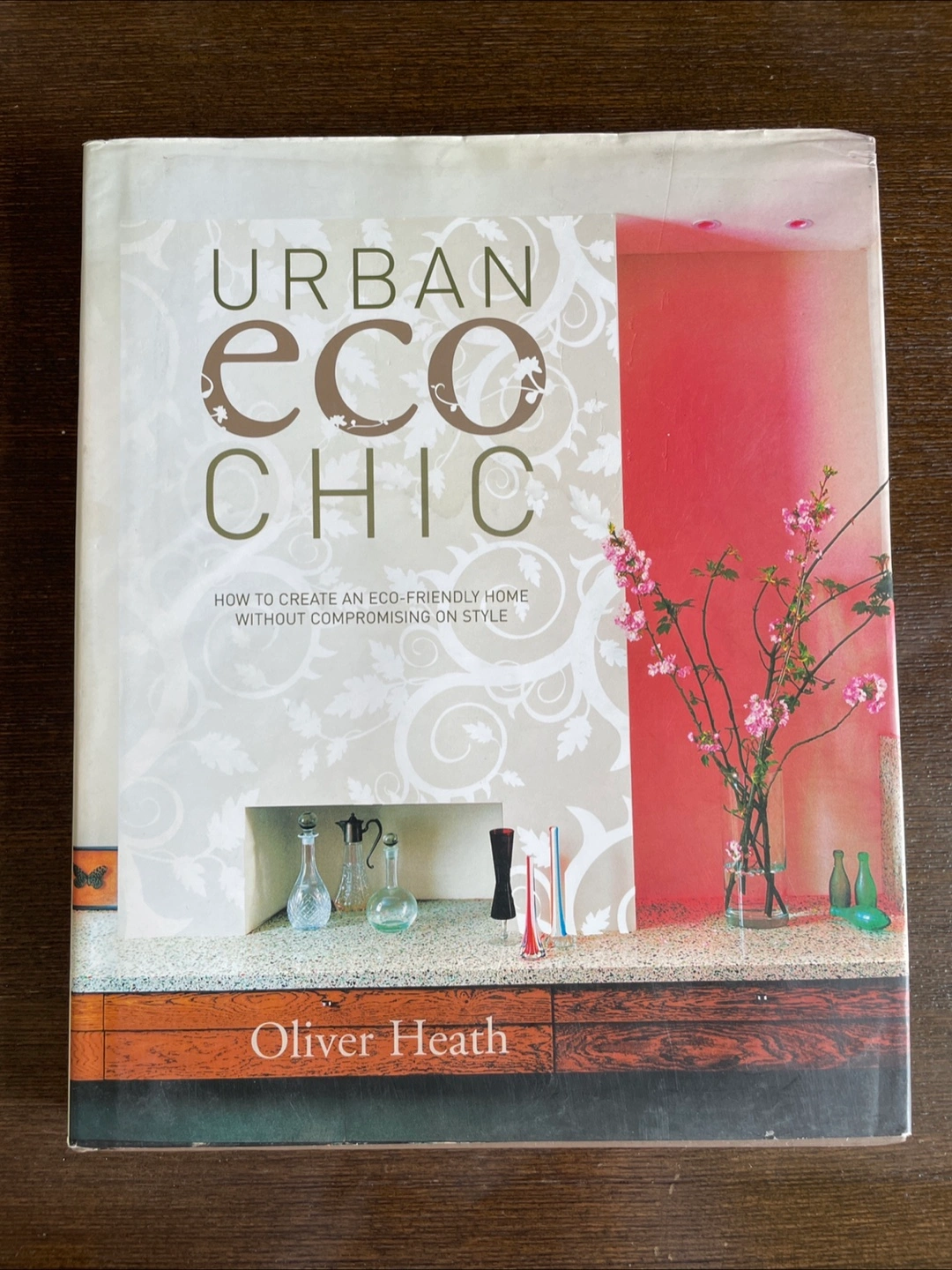 A book about creating an eco-friendly home. Features a variety of images. The cover showcases the title in large white letters. A great item for any decor enthusiast, this book can serve as an eye-catching coffee table piece to spark conversation. A little water damage on the top corner but overall great condition.