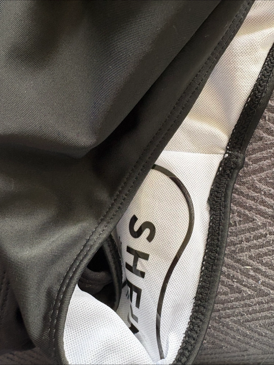 A pair of black bikini bottoms. One pair features a white and yellow trim. The bottoms are of high waisted design. These bottoms are perfect for a relaxing day by the pool. Brand new never worn Plus size 3x