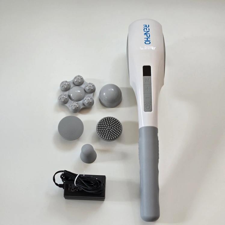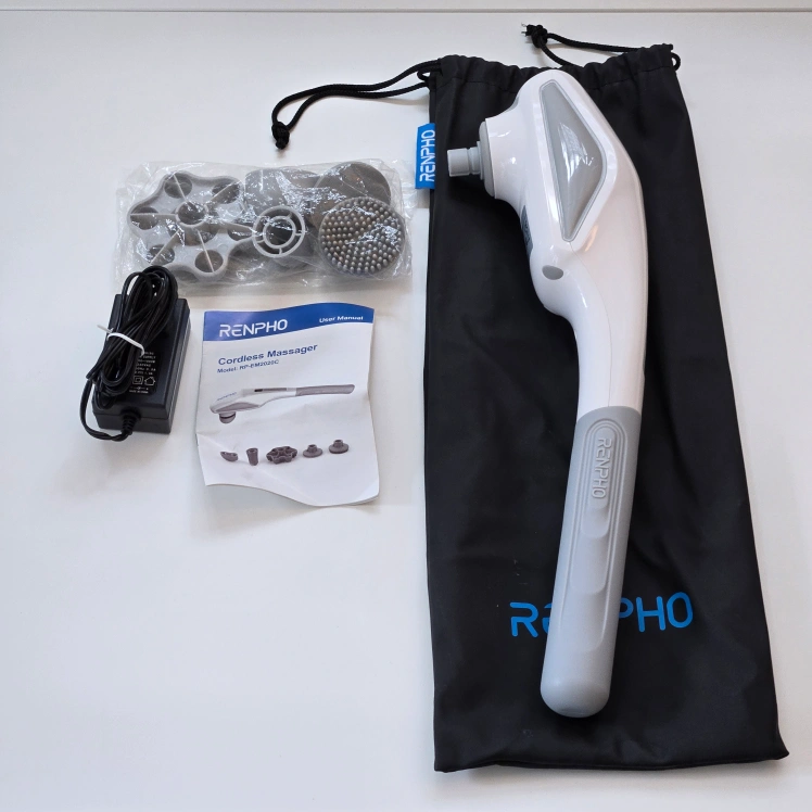 • Used only once • No scratches, chips or dents • Brand: Renpho • Light-weight • It includes 5 interchangeable massage heads: flat, intensive, round, point, and 6-node • It is cordless & rechargeable