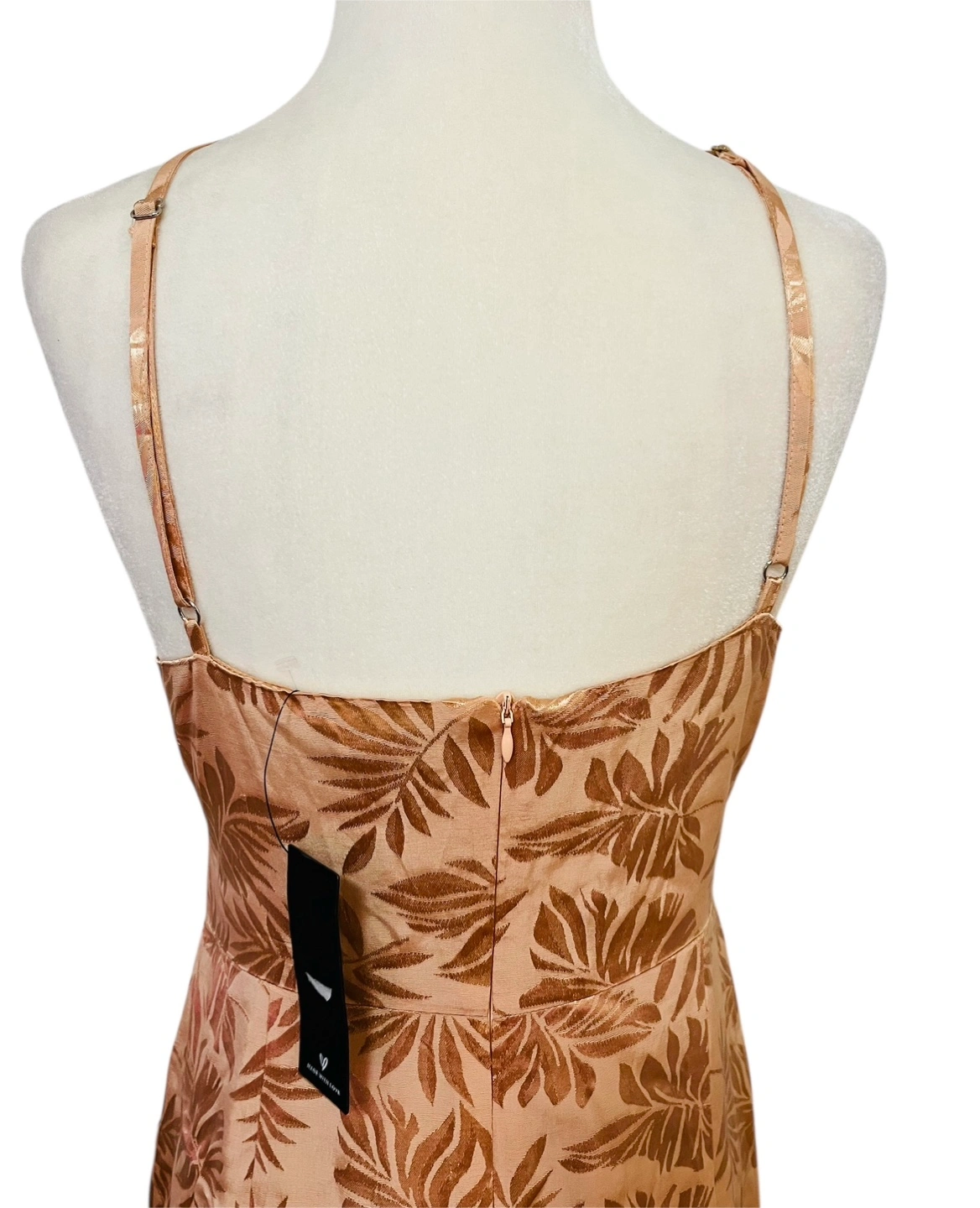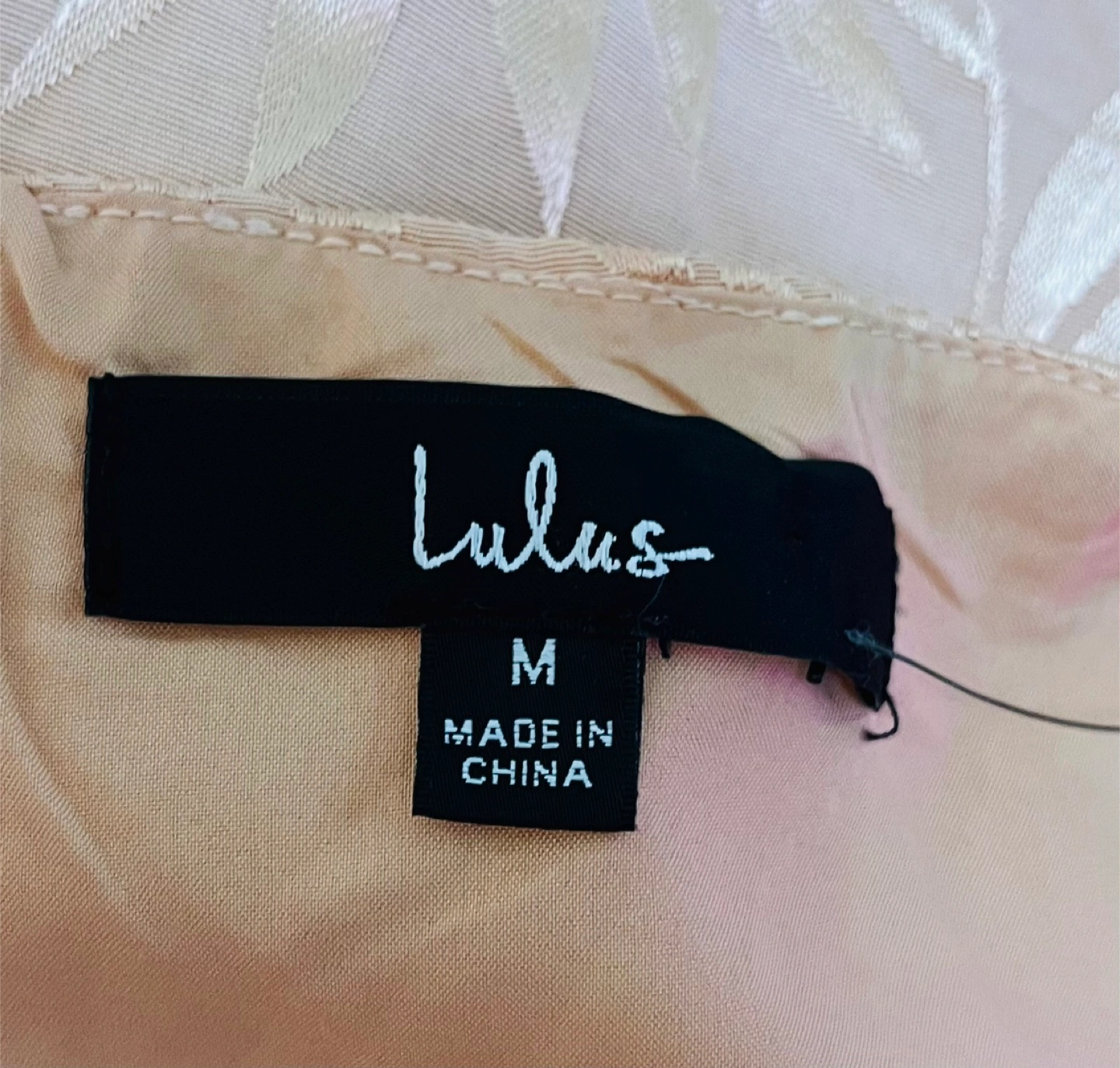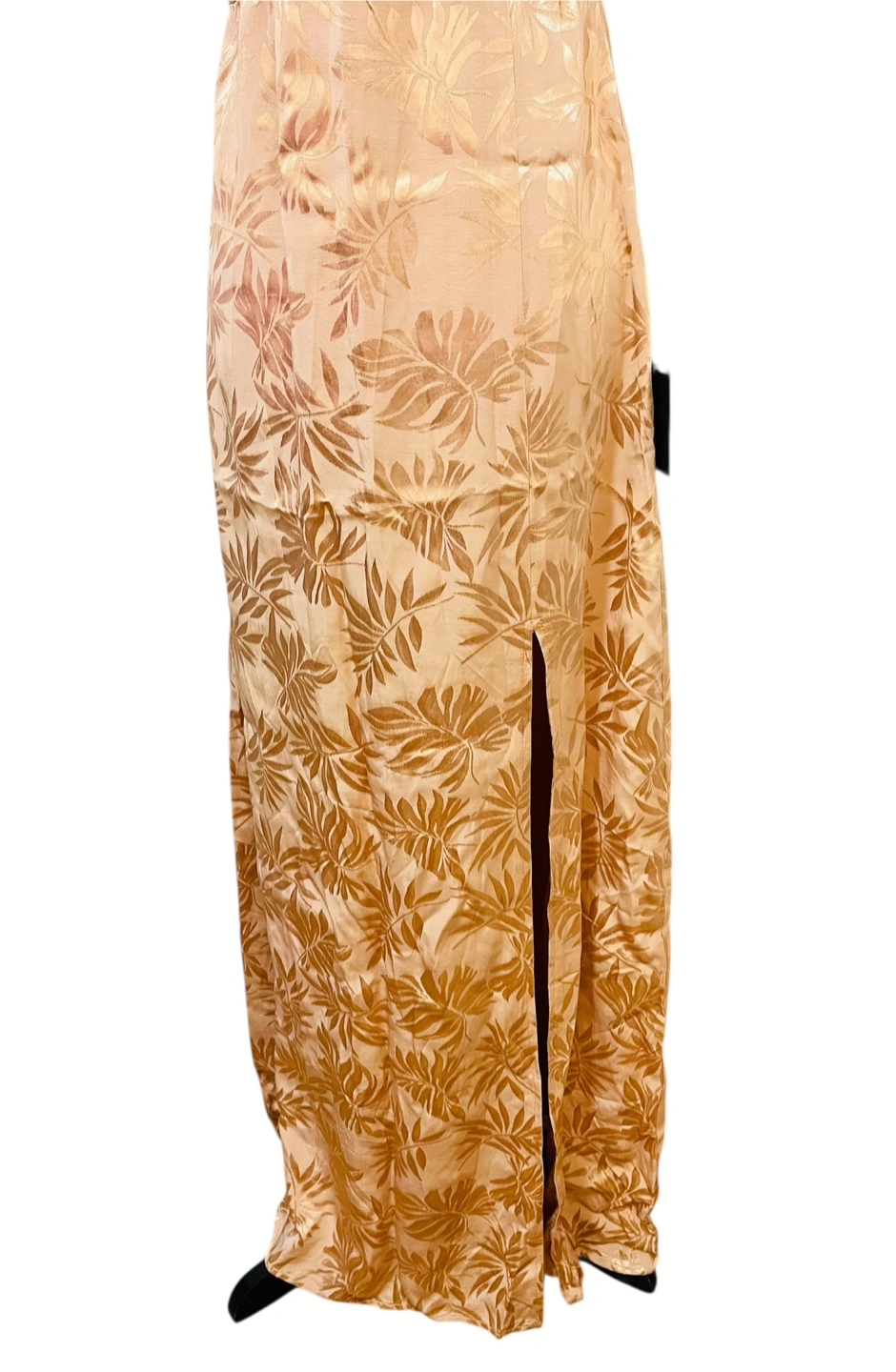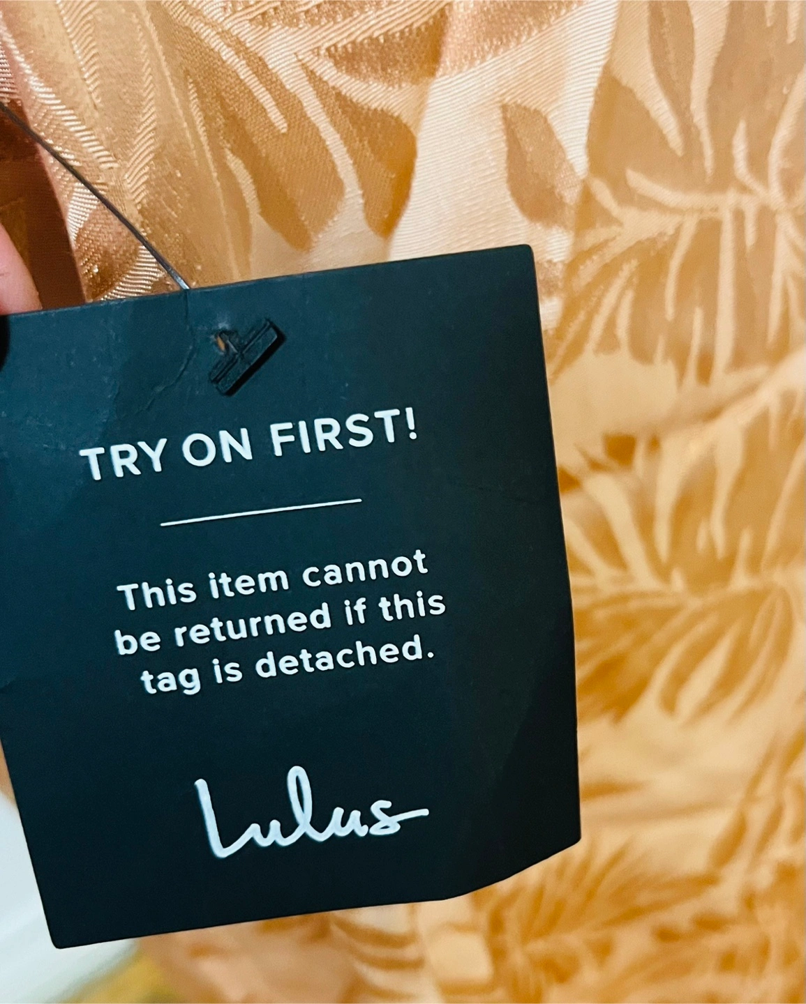 A vision of tropical elegance, this Lulus maxi dress is a stunning choice for your next special occasion. The halter neckline and criss-cross back straps add a touch of allure, while the flowing silhouette and side slit create a graceful and flattering look. The dress features a beautiful floral print in a shimmering gold tone, perfect for making a statement. Imagine yourself twirling on the dance floor at a summer wedding, sipping cocktails at a garden party, or enjoying a romantic evening out in this gorgeous gown. Style: Maxi Dress Length: Long Color: Beige Department: Women Sleeve Length: Sleeveless Pattern: Floral Occasion: Party/Cocktail, Wedding, Formal Material: Polyester Neckline: Halter Fabric Type: Satin Character: Tropical, Summer, Party Girl, Goddess, Bohemian Season: Summer, Spring Sleeve Type: Strappy Sleeve New with tags Length 52” Pit to pit 15” Waist laying flat 14.5” PU Ottawa & Strasburg, Kitchener Keywords: Lulus dress, maxi dress, halter dress, floral dress, tropical print, occasion dress, gown, formal dress, party dress, wedding guest dress, summer dress, slit dress, gold dress, beige dress