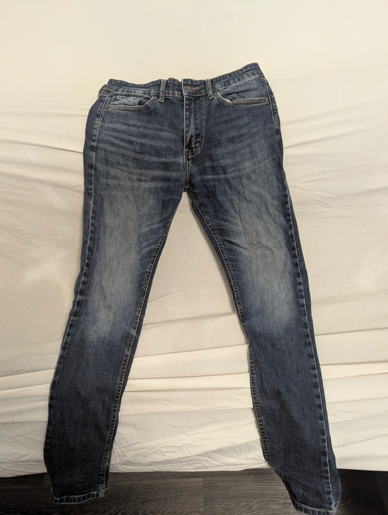 Dark wash jeans. Five-pocket styling. Belt loops. Perfect for a leisurely walk in the park.