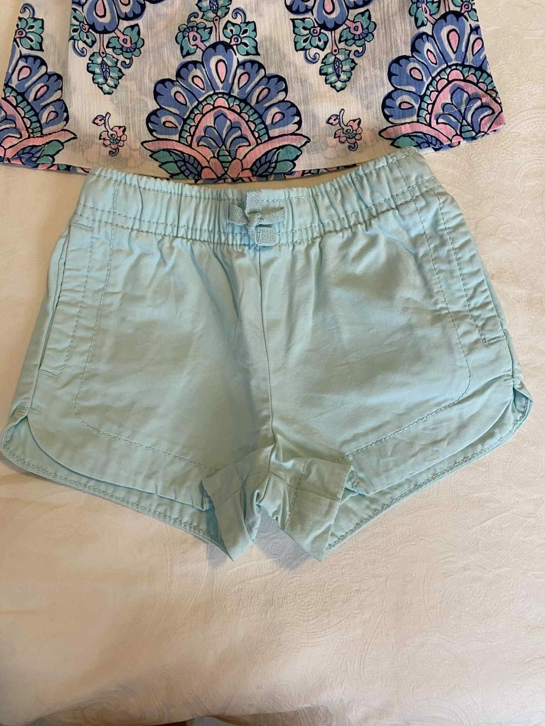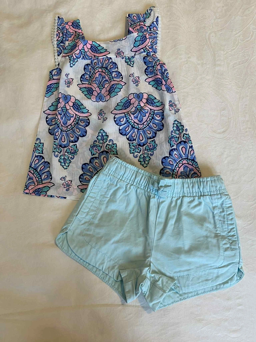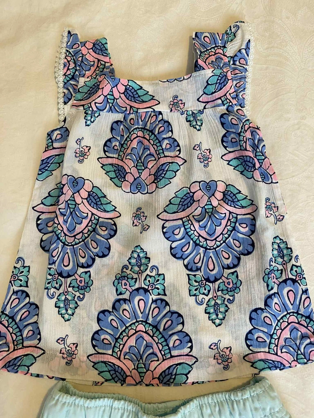 Both are washed but never Used .The top has a floral print. The shorts are a solid pastel blue. Perfect for staying cool on a summer's day.