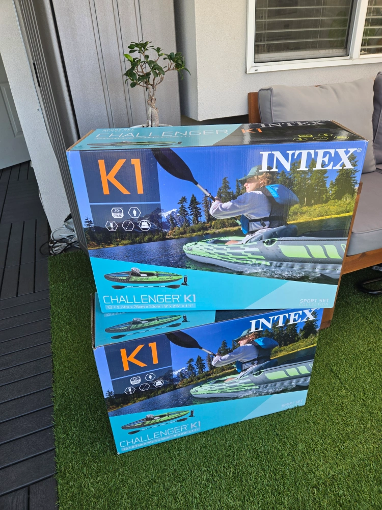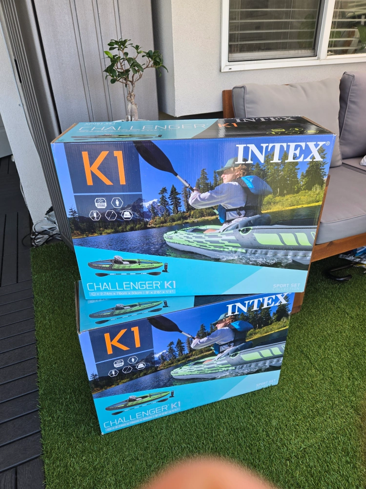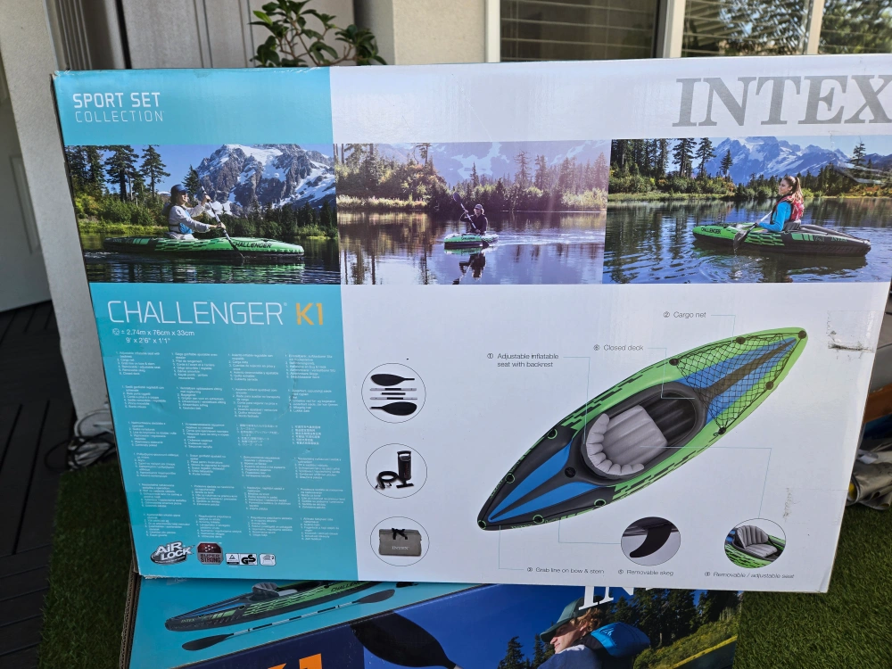 Intex k1 challenger kayak. Brand new sealed in box. 2 available. 100 firm each or take both for 180 firm. Pick up near 22nd skytrain new west