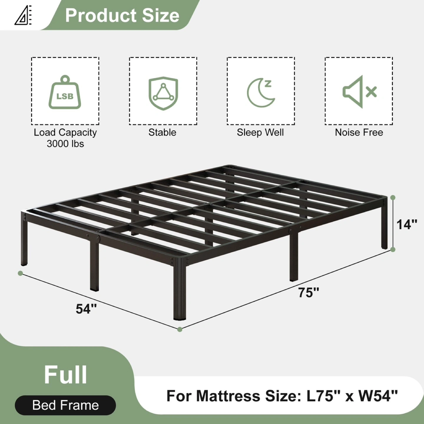 Brand new in original box Please check images for designs and prices DM for more information on any design. Pickup/Delivery available all over GTA Size Full Material Metal Product Dimensions 189.5L x 136W x 35.6H Centimetres Style 14 Inch Special feature None Headboard Compatible, Fade Resistant, Squeak Resistant Colour Black Bed frame full size with rounded cylindrical of front legs to prevent bumps injuries. Full size bed frame dimensions: 74.6"L x 53.6"W x 14"H for mattress size: 75"L x 54"W No squeak bed frame provide you a quiet, peaceful and comfortable and sleeping time . Heavy-duty and stable metal full size platform bed frame can holds over 2000 LBS. Easy to assemble metal full bed frame, included all installation parts and hardwares.