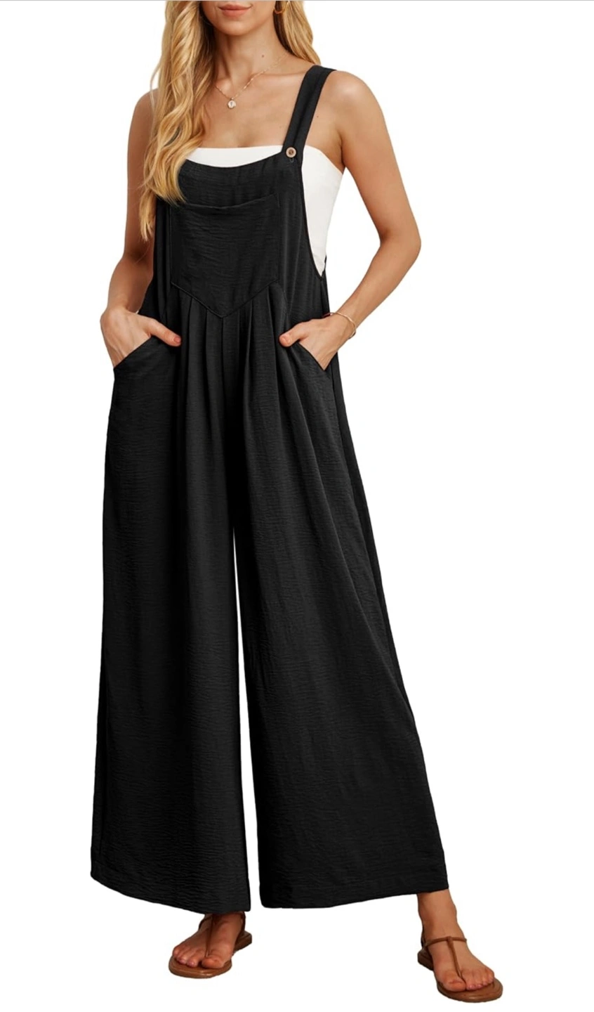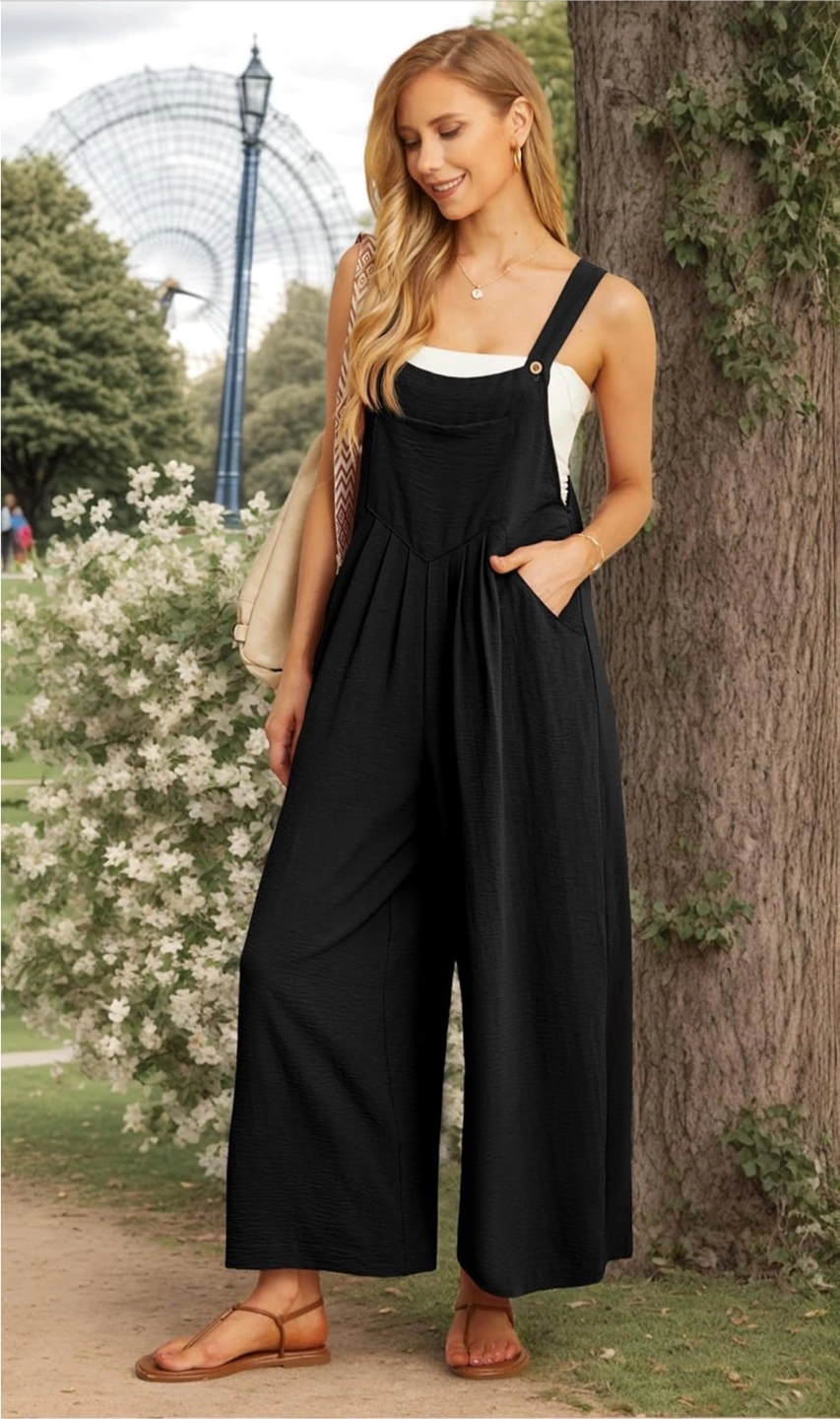 New with tag! Retails for $43 Breathable Material: 100% Polyester. The jumpsuit is not see-through, Super soft, Lightweight, flowy, and skin-friendly Stylish and comfortable:This jumpsuit is a perfect combination of style - comfortable pant and adjustable strap with buttons, sleeveless, loose casual fit with pockets, feeling comfortable and cool. Versatile and practical: These overalls are perfect for a wide range of activities, including daily life, yoga, jogging, hiking, night out, outdoor activities, casual wear, home wear, streetwear, going out, vacation or beach wear, maternity, stylish looking for any occasion. The pockets design offers added convenience for storing essentials like your phone, keys, or wallet. Stylish wide-leg jumpsuit. Features adjustable straps, functional pockets, and a relaxed fit. Perfect for a casual or dressed-up look. Comfortable linen-like material.
