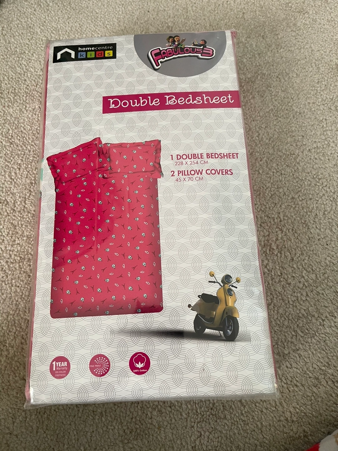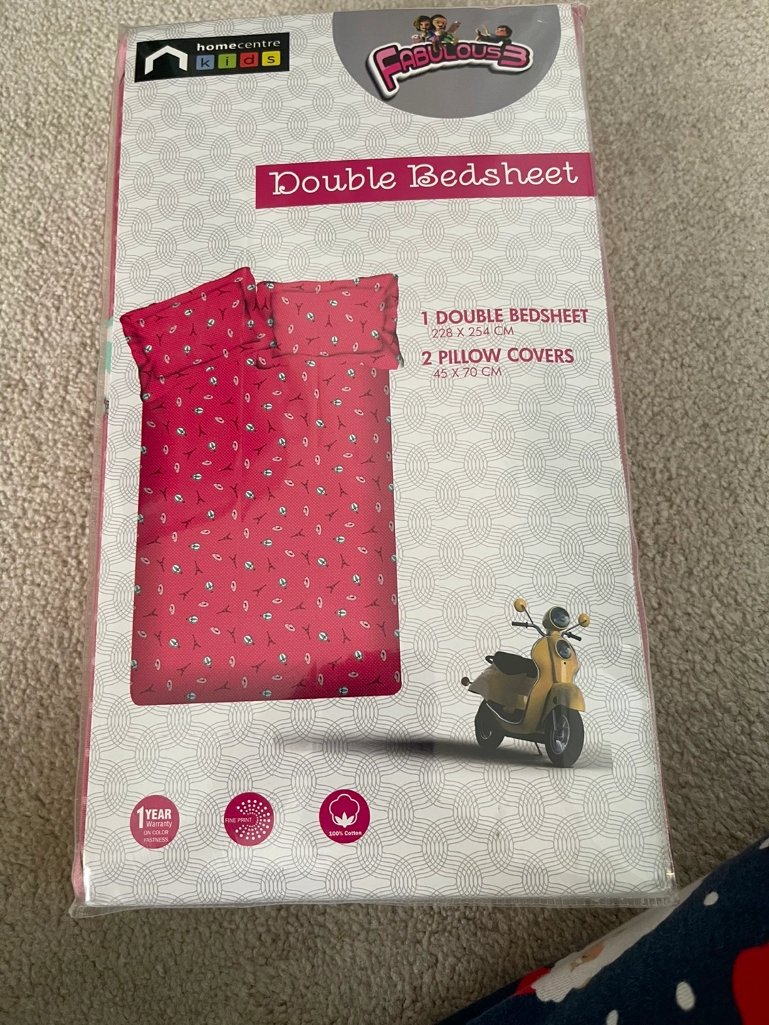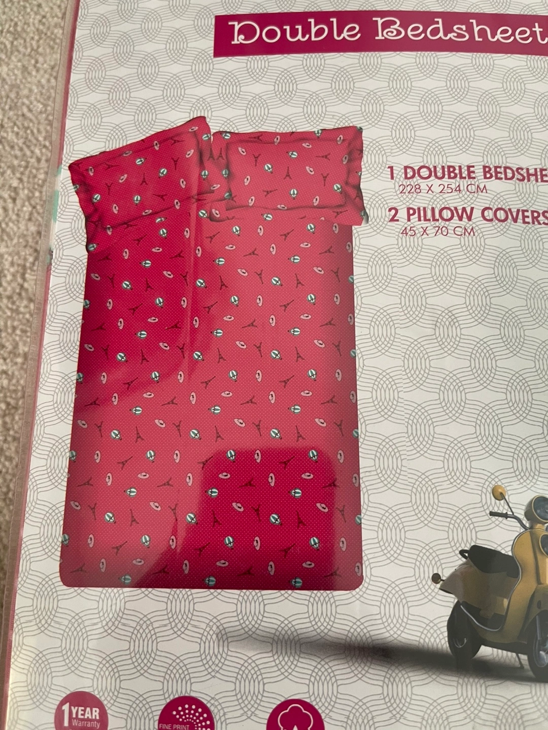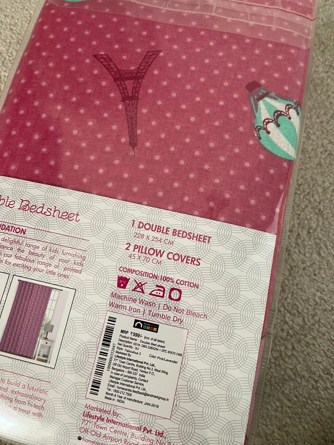 Features a lovely print, containing one double bedsheet and two pillow covers. Perfect for a relaxing night's sleep. The bedsheet is made of cotton.