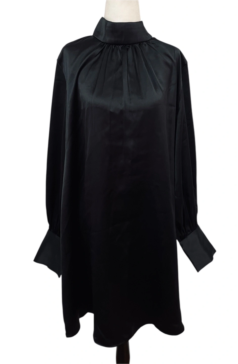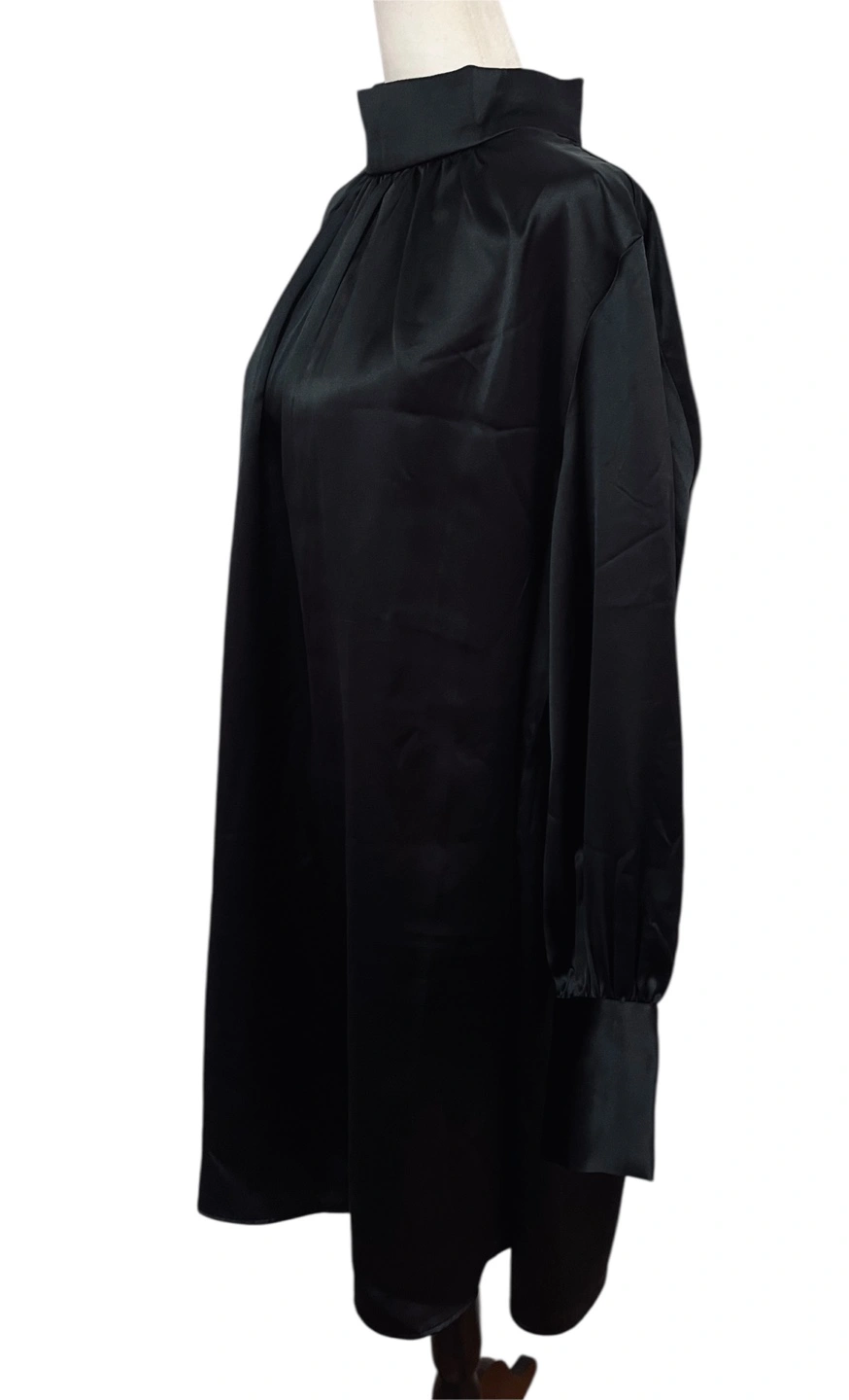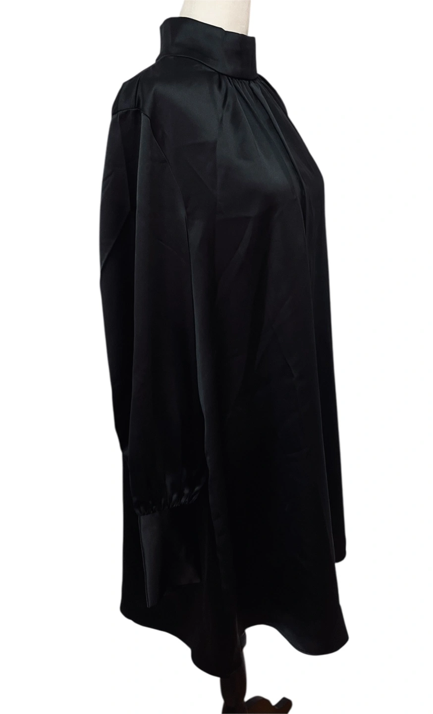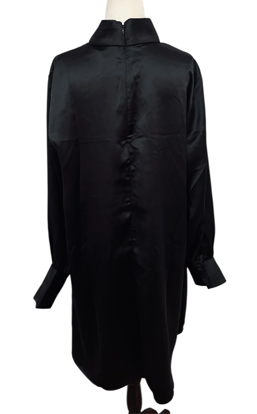 Command attention in this sleek black mini dress. A sophisticated mock neck adds a touch of elegance, while the long sleeves with buttoned cuff details bring a refined charm. The dress drapes beautifully, creating a flattering silhouette that moves with you. Imagine yourself turning heads at a cocktail party or making a statement at a chic dinner. This dress is perfect for a night out, a special event, or any occasion where you want to exude confidence and style. Style: Mini Dress Length: Mini Color: Black Department: Women Sleeve Length: Long Sleeve Pattern: Solid Occasion: Party/Cocktail Material: 100% Polyester, Polyester Blend Neckline: Mock Neck Fabric Type: Satin Character: Minimalist, Retro Season: Fall, Winter, Spring, Summer Sleeve Type: Balloon Sleeve Excellent Condition PU Ottawa & Strasburg, Kitchener Keywords: H&M, black dress, mini dress, mock neck, long sleeve, cuff detail, party dress, cocktail dress, women's dress, little black dress, LBD, size L, elegant dress, classic dress