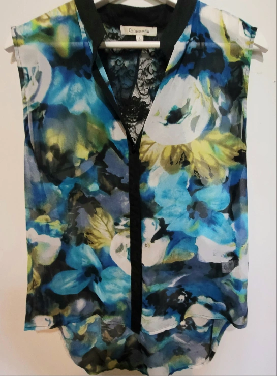 Floral pattern sleeveless top. Features a keyhole back with black lace . Has a collared neckline and button closure. A great addition to your wardrobe for a relaxing evening stroll. ♡No Holds ♡First Come First Serve ♡Serious Buyers Only Please.