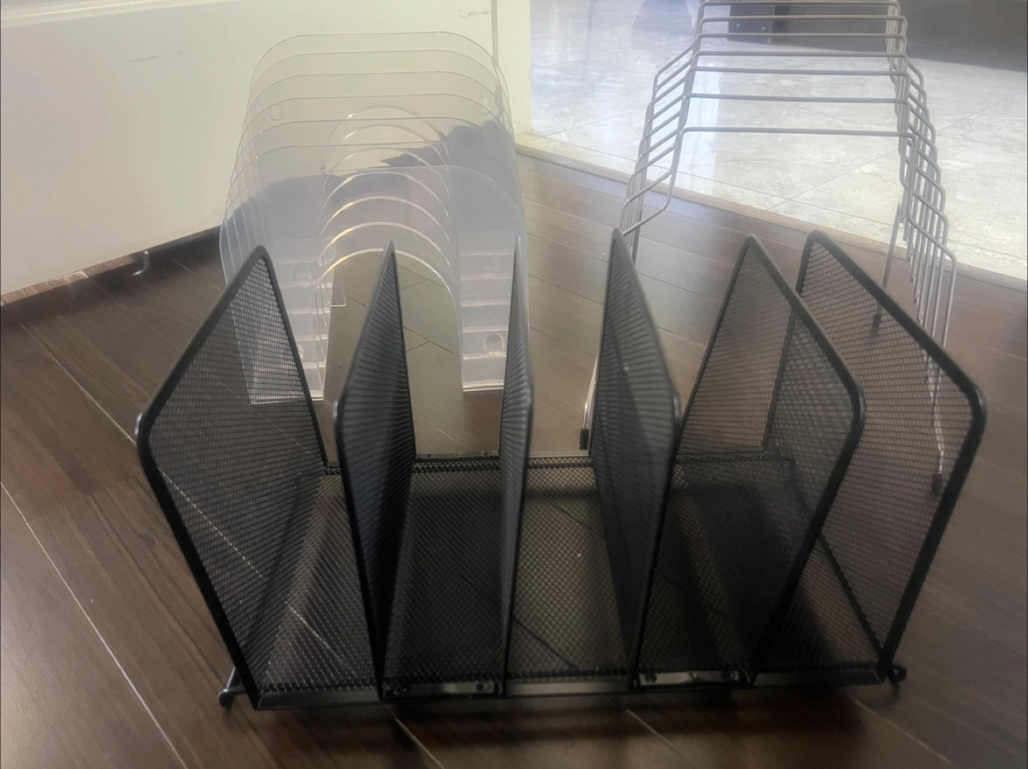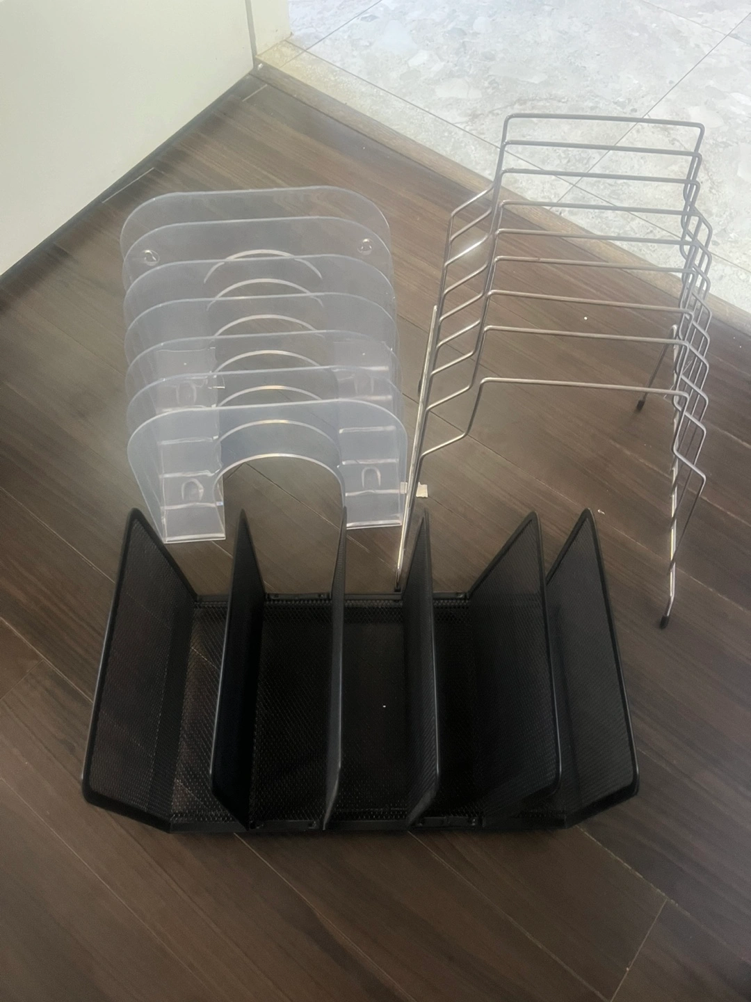 Here is a bundle of office organizers. The bundle includes a mesh magazine holder and two other document organizers. A tidy workspace will bring you peace of mind.