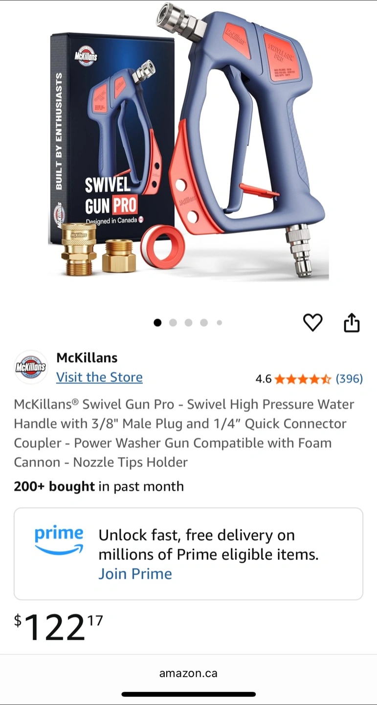 McKillans Swivel Gun Pro - Swivel High Pressure Power Washer Gun. Like New. $75 Reg. Price $123 +HST