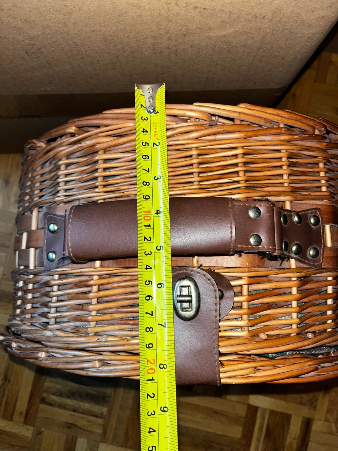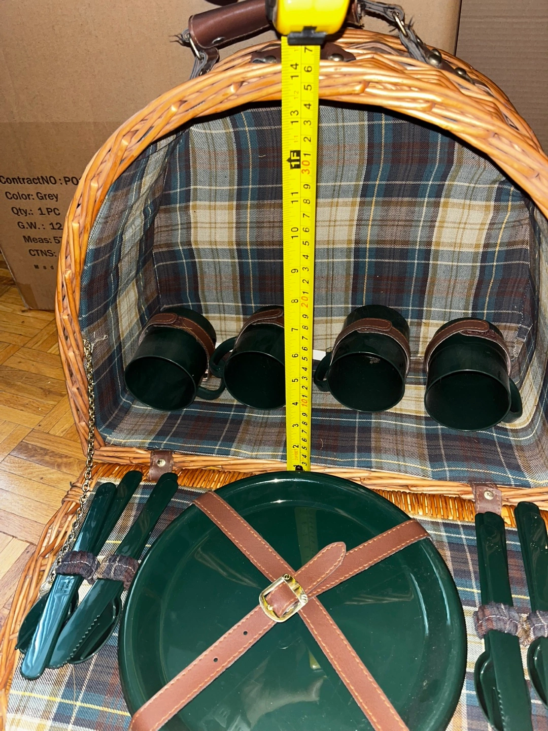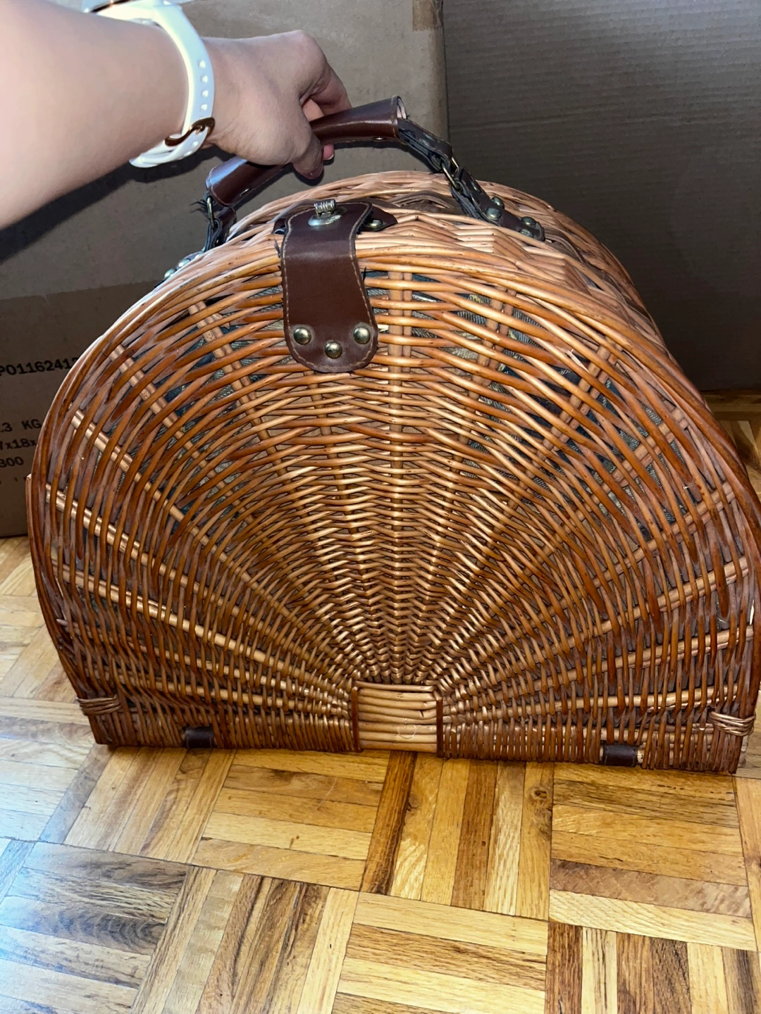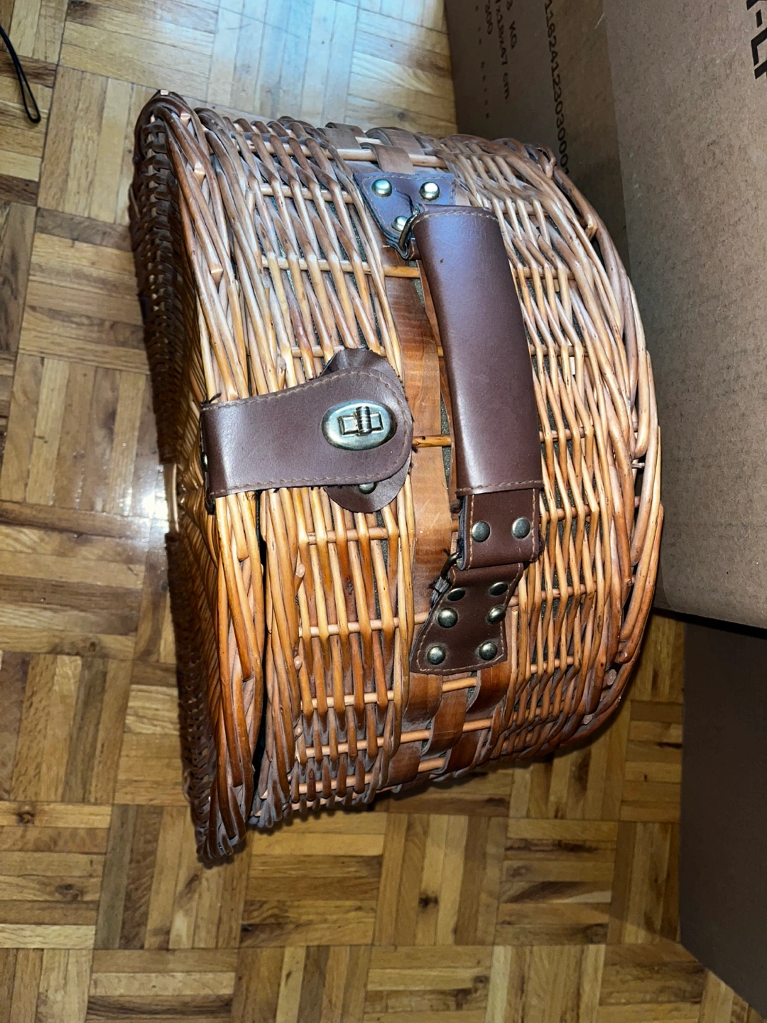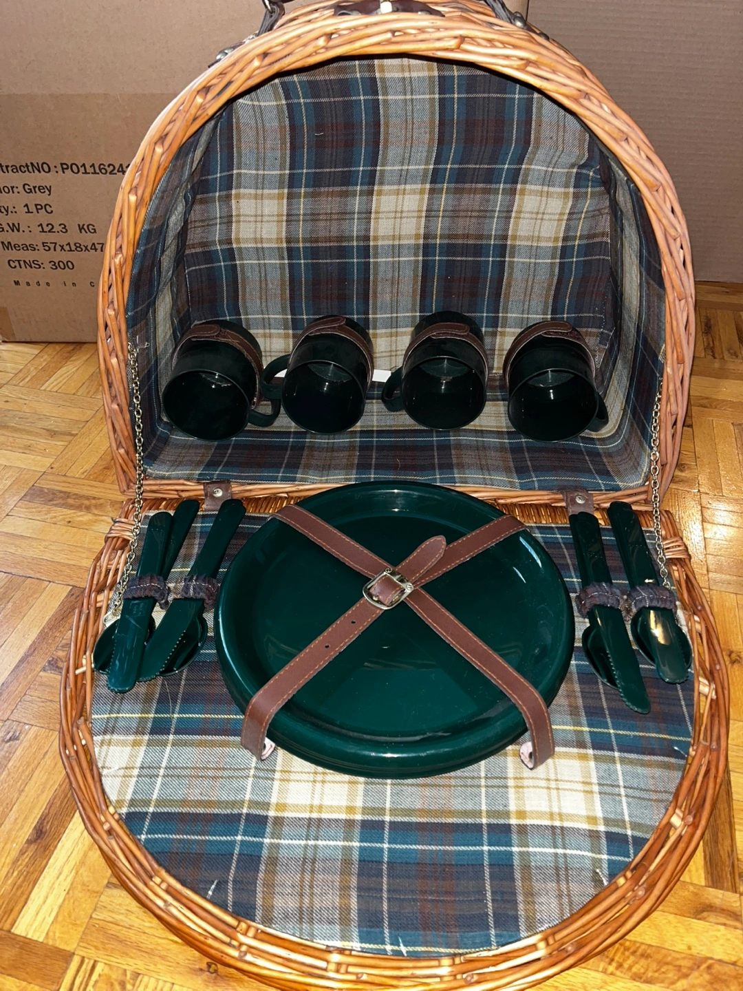 💚New 💚Woven basket with a handle with brown leather detailing. 💚Comes with 4 sets of plastic cups, plates, and utensils, all neatly secured. 💚A great addition to any outdoor adventure. Pick up only Cash only