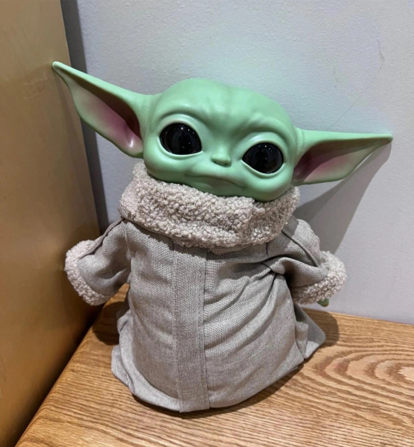 Mattel Star Wars Grogu Plush Toy, Character Figure with Soft Body. Inspired by Star Wars The Mandalorian, 11-inch This 11-inch Grogu plush toy will capture the hearts of Star Wars fans everywhere! Inspired by the Disney+ series, The Mandalorian, the adorable Grogu character with green skin, big ears and large eyes looks like a "Baby Yoda" but is called The Child. The toy plush has a soft body, plus a sturdy base filled with beans, perfect for cuddling or display as a collectible. Character wears his robes, as seen in the show. Star Wars fans will love taking on the role of The Mandalorian Bounty Hunter and caring for The Child on their own! Baby Yoda