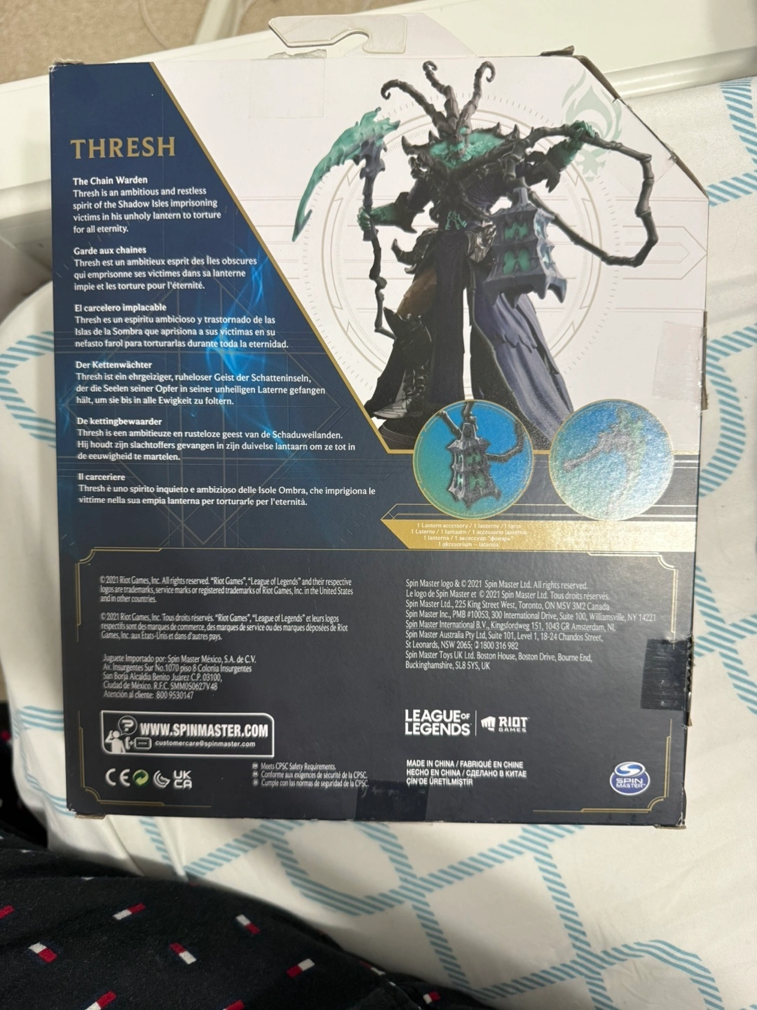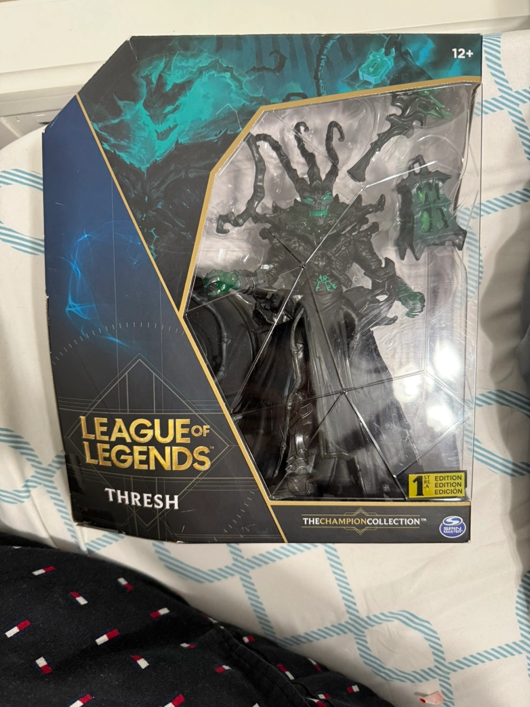 League of legends Thresh figure Never opened First edition The figure is in the original packaging, ready for someone to enjoy. Add this to your collection and imagine all the possibilities.