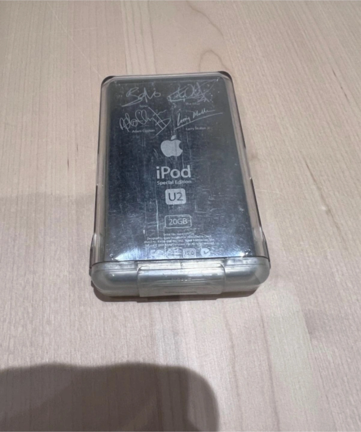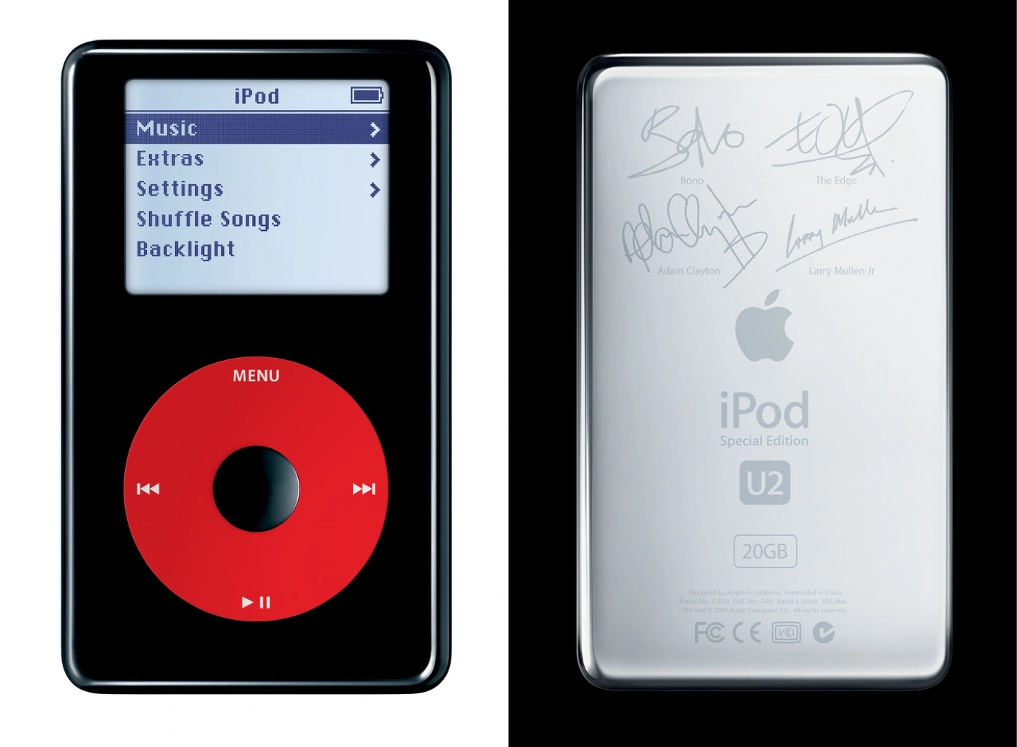 APPLE IPOD CLASSIC 4th GENERATION U2 SPECIAL A special U2 edition was announced on October 26, 2004, to cross-market U2's How to Dismantle an Atomic Bomb album. The plastic front piece of the U2 edition iPod was black and the scroll wheel was red, to coincide with the color scheme of the U2 album. With 20 GB and the signatures of all four members of U2, the special edition iPod