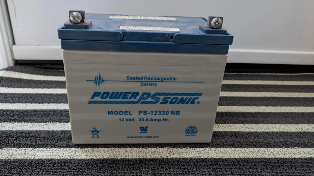 Power-Sonic PS-12330 NB Sealed Rechargeable Battery * Model: PS-12330 NB * Voltage: 12 Volt * Capacity: 33.0 Amp.Hr (Ah) * Type: Sealed Rechargeable Battery * Manufacturer: Power-Sonic * Manufacturing Date: January 20th, 2016 (based on code "01206-L") This battery has been well-maintained and is in good working condition. It is ideal for cars, boats, industrial equipment, and more.