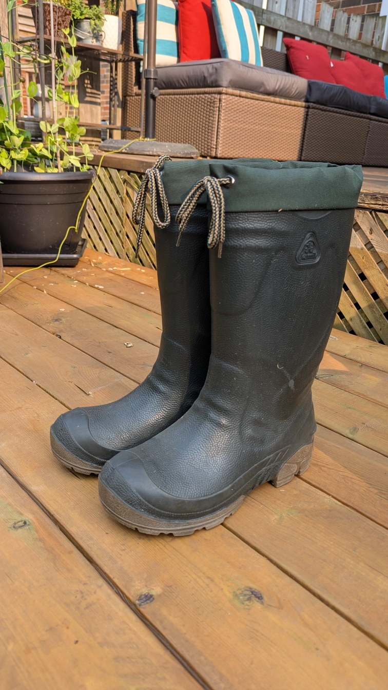 Kamik Icecrusher boots, perfect for muddy conditions, or heavy rain. These highly durable and insulated boots are designed to keep your feet warm, dry, and comfortable in challenging weather. Condition: Excellent used condition. Minimal wear, well-maintained.