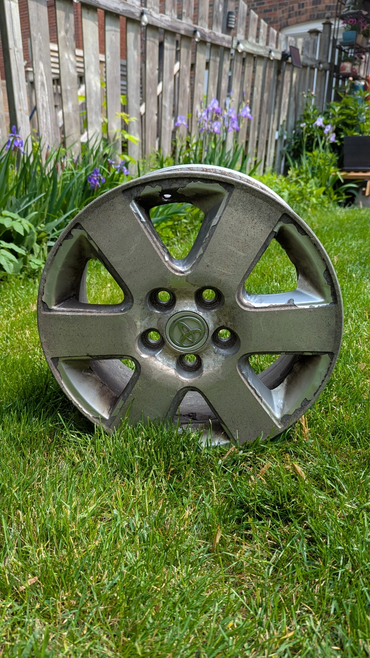 Set of 4 Genuine Toyota 16" Steel Rims - Made in Canada Key Details: * Brand: Toyota (OEM - Made in Canada) * Size: 16 inches (Diameter) * Width: 6 inches (Rim width as marked: 16x6JJ) * Bolt Pattern: 5x120mm - Please verify your vehicle's bolt pattern for compatibility before contacting. * Condition: Used, but in solid structural condition.