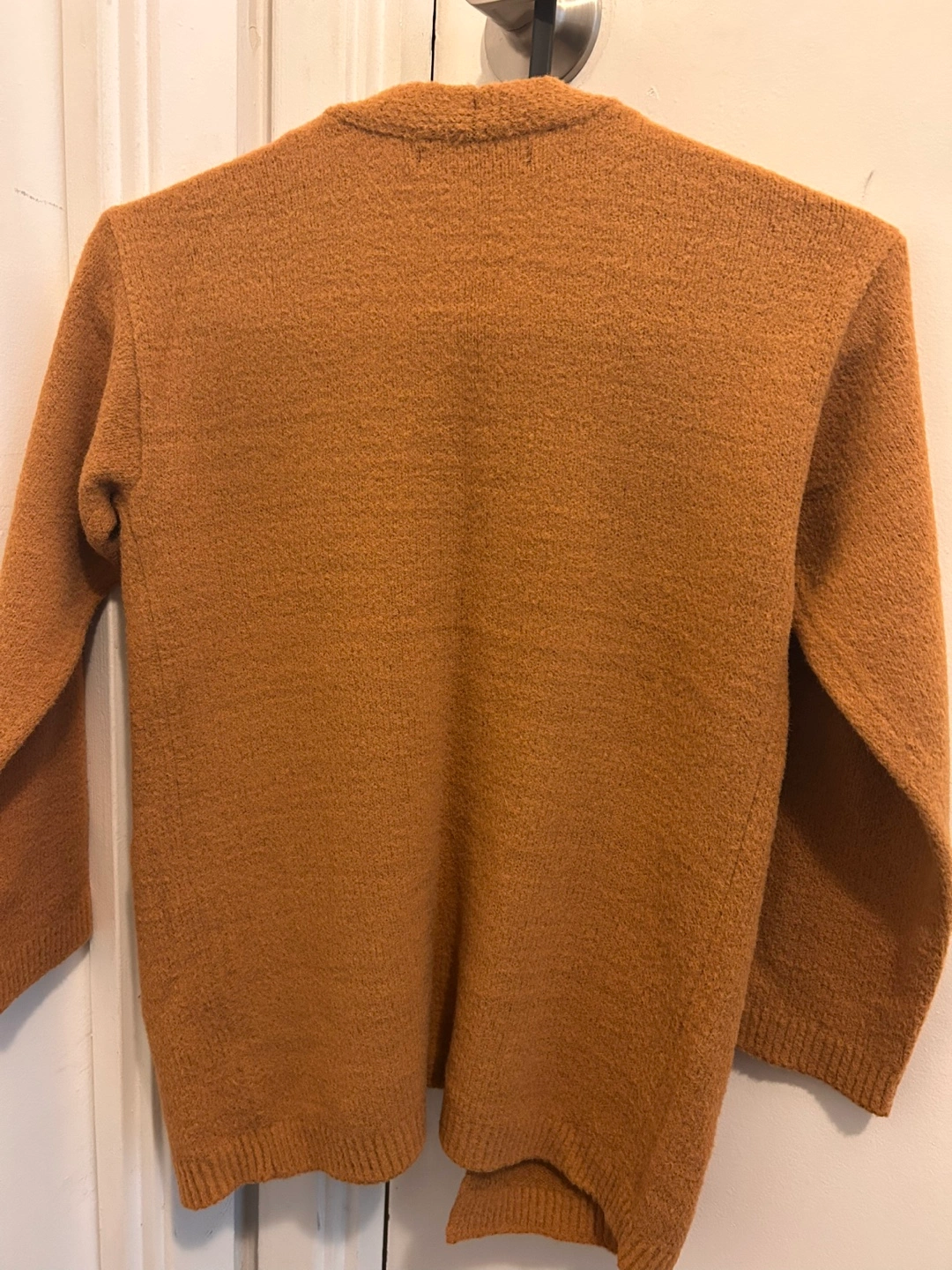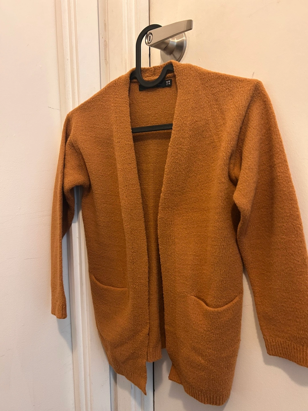 A warm and cozy sweater in a lovely colour. Features pockets, long sleeves, and an open front. Brand: GEORGE Size: M 7-8
