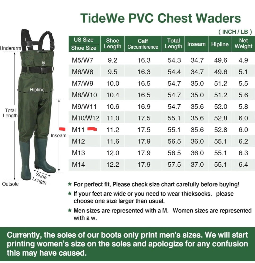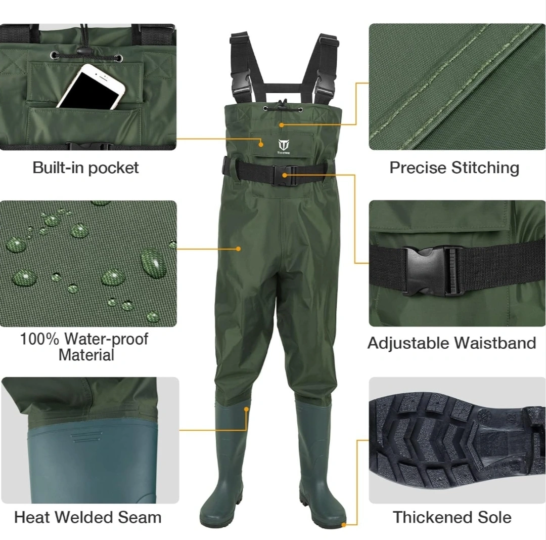 TideWe Bootfoot Chest Waders, Fishing Waders 2-Ply Nylon Waterproof Hunting Waders with Boot Hanger for Men °•○•°•○•°•○•°•○•°•○•°•○•°•○•°○•°•○°•○°•○ 🌟 Price: $70 📦 Condition: New / size mens 11 📍 Pick-Up: Scarborough Golf Club Rd & Lawrence Ave E 🚀 Fast Delivery: local within reasonable range or budget-friendly shipping via Canada Post/UPS. 🔎 Don't Miss Out! Explore my other listings for more amazing deals. Thanks for stopping by! °•○•°•○•°•○•°•○•°•○•°•○•°•○•°○•°•○°•○°•○ Stay dry and ready for action with these TideWe Chest Waders – the perfect gear for fishing, hunting, farming, or any job that gets messy! Durable, lightweight, and loaded with extras, these high-performance waders offer unbeatable comfort and protection without slowing you down. ✅ Model: TideWe Bootfoot Chest Waders – Size 11 (Men’s) ✅ Fabric: Rugged PVC/Nylon – 35% lighter than rubber waders ✅ Waterproof: Seam-sealed & boot-attached for full waterproof protection ✅ Design: • Adjustable H-back suspenders w/ quick-release buckles • Flip-out chest pocket + drawstring top ✅ Extras: • Boot hanger for fast drying • FREE waterproof phone case included! ✅ Perfect For: Fishing 🎣 | Duck Hunting 🦆 | Farming 👨🌾 | Wet Work 🧽 ⚠️ Fit Tip: Choose 1 size up if wearing thick socks or have wide feet. 🧼 Care: Machine washable (gentle cycle); low heat drying