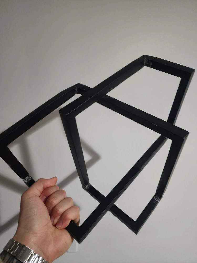 The geometric sculpture, painted black. The piece made of connecting squares. Place this unique item on your desk for a pleasant talking point, or anywhere around your home to enjoy. made of metal