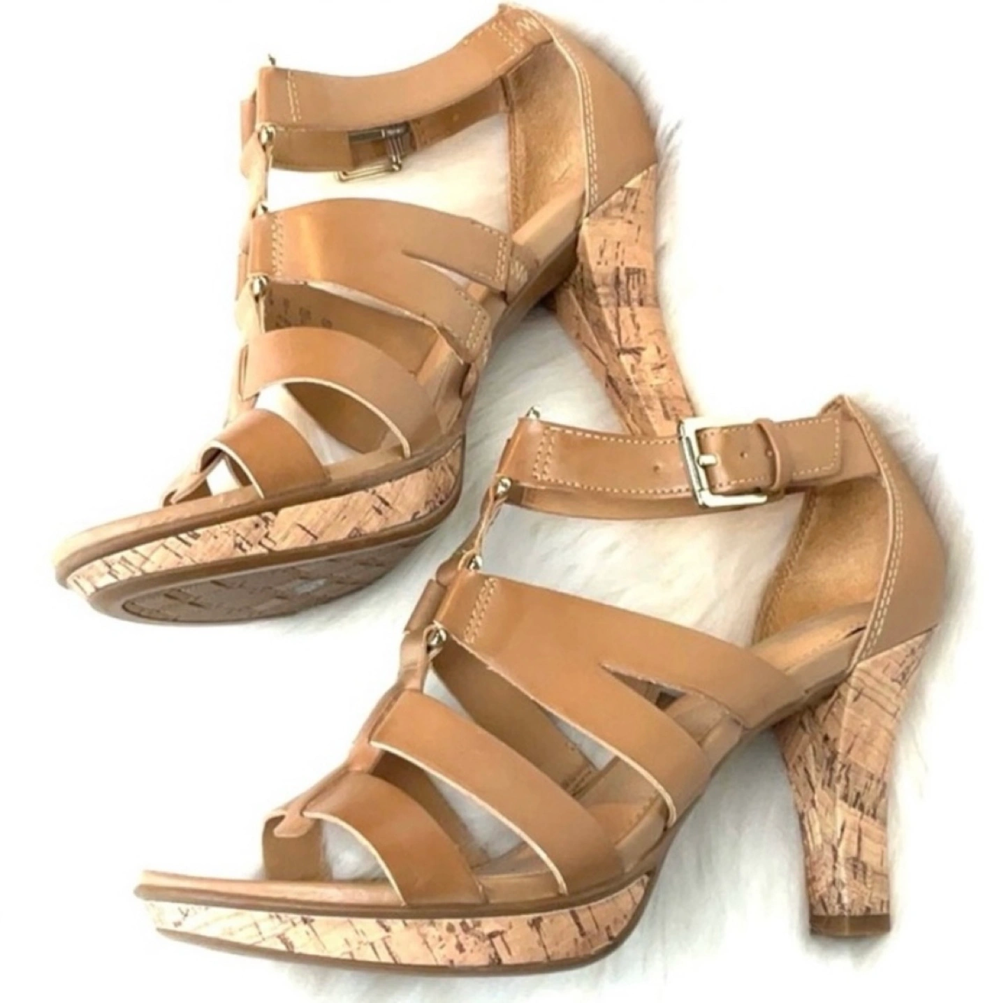 Step into effortless style with these chic gladiator-inspired sandals. The strappy design adds a touch of sophistication, while the adjustable buckle ensures a perfect fit. The cork heel provides comfortable lift, making them ideal for all-day wear. These sandals are the perfect complement to your favorite sundress for a brunch date or elevate your evening look for a night out. Like New, Excellent Condition Heel Height 3.5” Women’s 9.5 PU Ottawa & Strasburg, Kitchener Keywords: Naturalizer, sandals, women's sandals, dress sandals, gladiator sandals, strappy sandals, cork heel, tan sandals, brown sandals, summer sandals, casual sandals, size 8, buckle closure