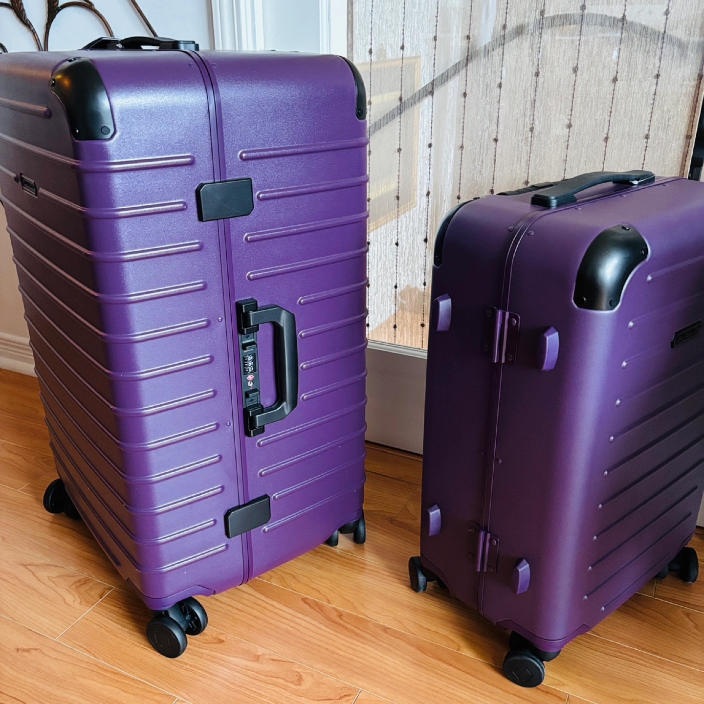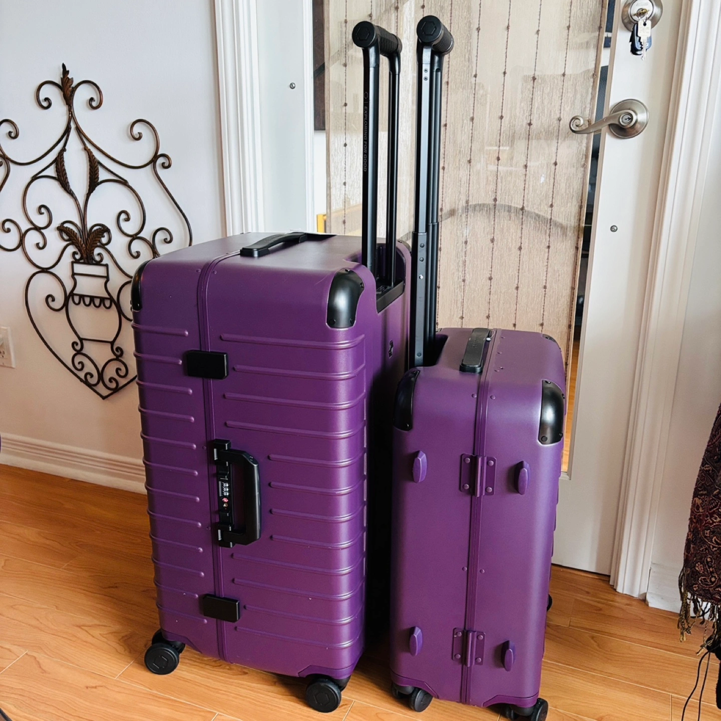Beautiful and strong luggage set in a deep provence purple colour. Includes carry on and cabin / check in luggage. Classy and easy to spot at baggage pick up. 4 easy glide spinner wheels, extra wide grip handles, slow close side handles, aluminum frame, and pinch lock openers (you will never go back to zippers after using these). Interior has multiple storage compartments, including shoe pockets, and usb charging ability. Check in luggage has a large area for shirts and suits on one side that works better than a garment bag. I use this luggage and it’s better than Tumi, Nomatic, Rimowa, Beis, Away and all the cheaper brands - Atlantic, Air Canada, Samsonite, Delsey, etc. Sells for 690 USD, which comes to around 1200 after exchange rate, taxes/duties/shipping, etc. Great deal!