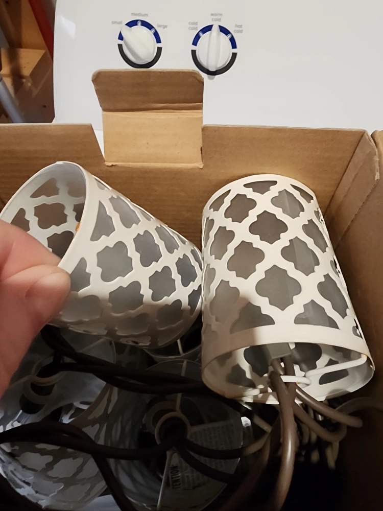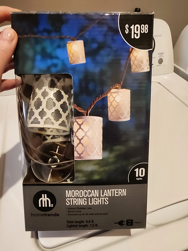 Beautiful Moroccan lantern string lights. Comes with ten lights. Brown wire and a plug. Connects up to 22 sets to end. Total length is 9.8 ft and lighted length is 7.5 ft. Pick up in Shaganappi sw.