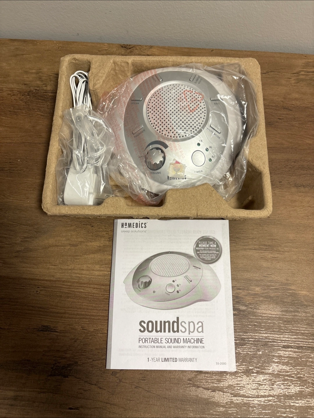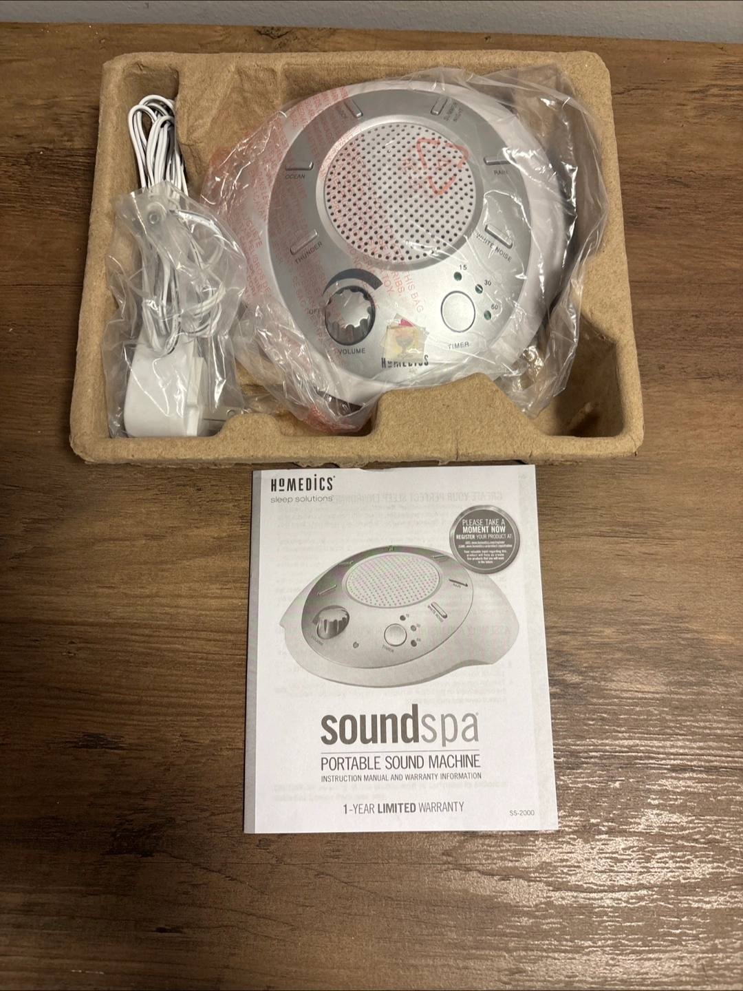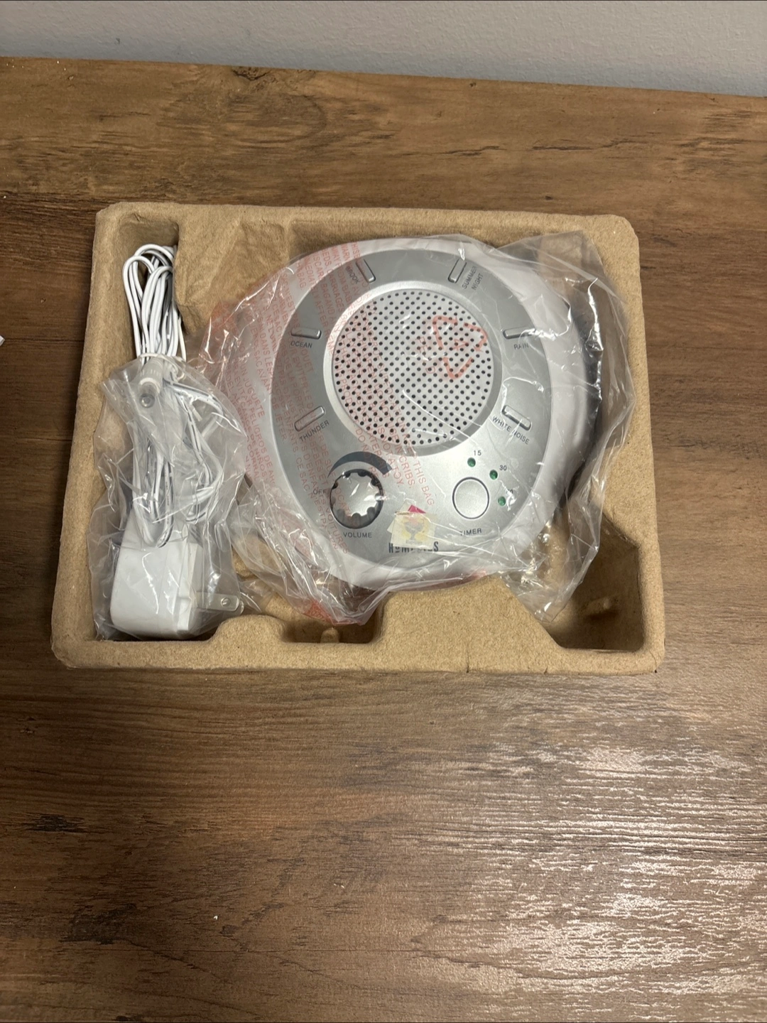 New Sound machine to help soothe you into a good night's rest. Included is the sound machine, power adapter, and manual.