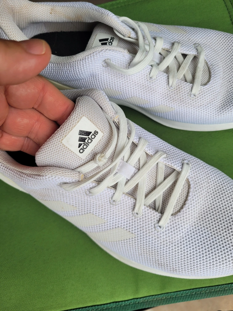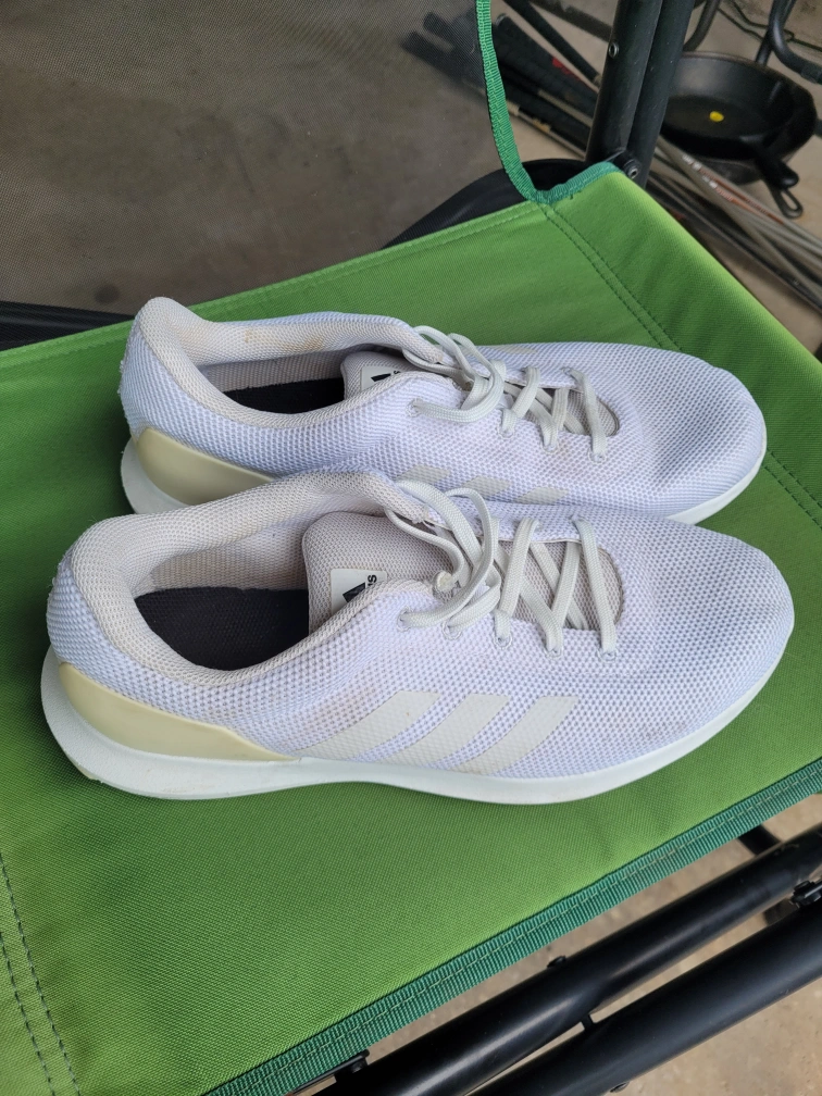 White sneakers. Comfortable style. Mesh uppers. Perfect for a relaxing walk around the park. men's 8.5