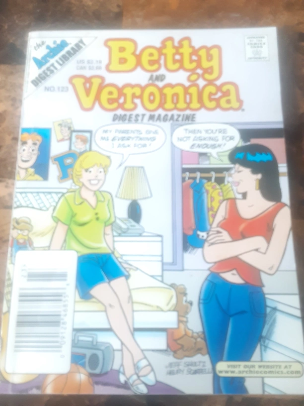 Magazine featuring Betty and Veronica. A great way to wind down after a long day. The magazine has colourful graphics.
