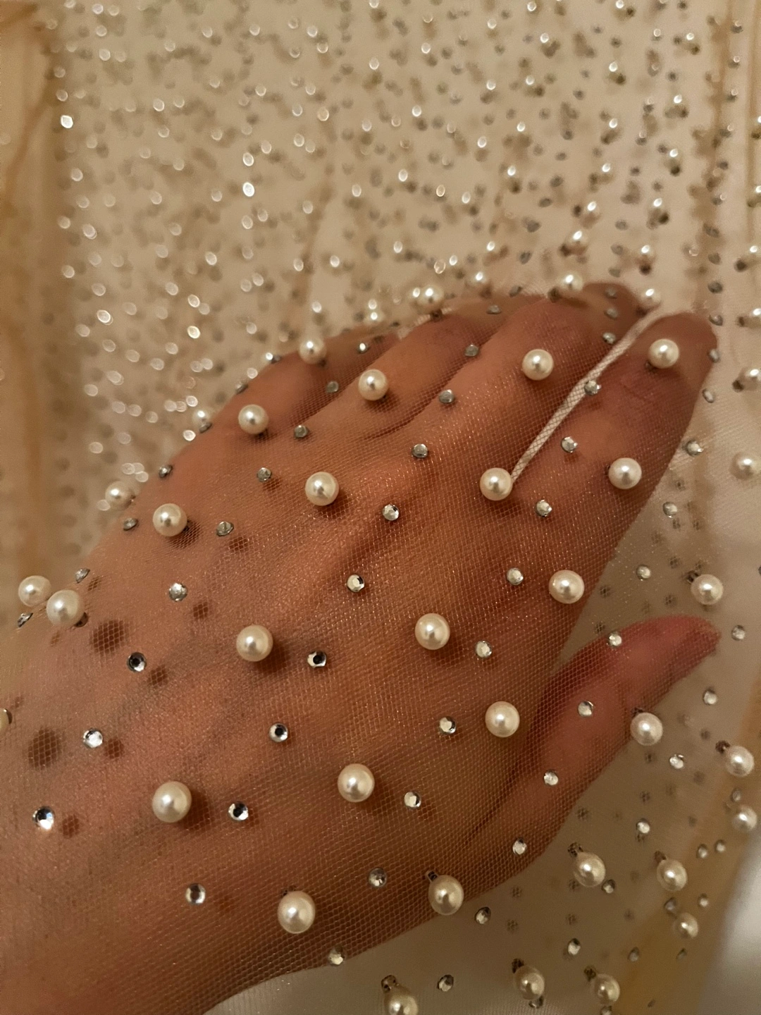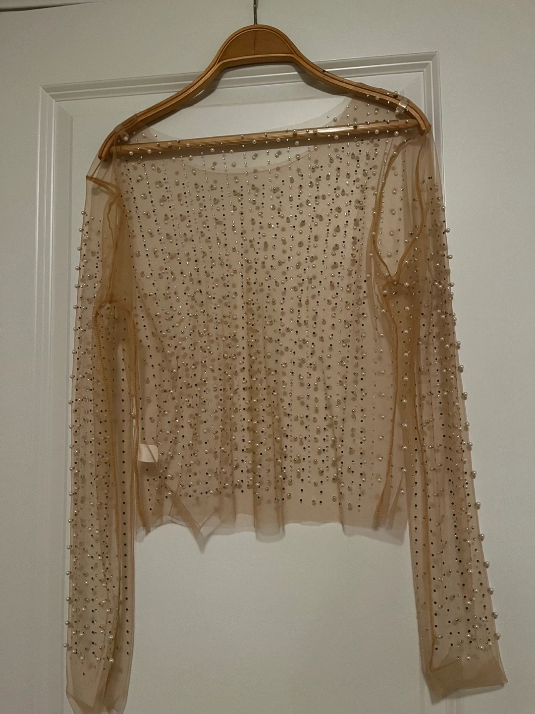 Long sleeve sheer top. Embellished with beads. A beautiful garment to add to your collection.