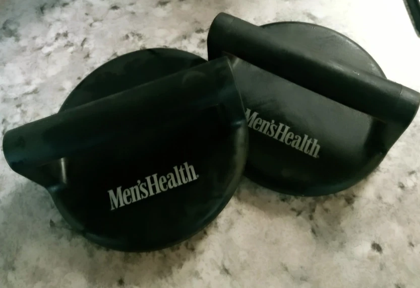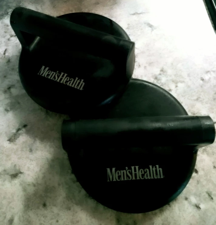 These push-up stands would be a great addition to anyone’s home gym. The round base is black. Features a black handle. Men's Health logo is present on the top. Serious Buyers Only Please. Located Kerr and Speers Rd