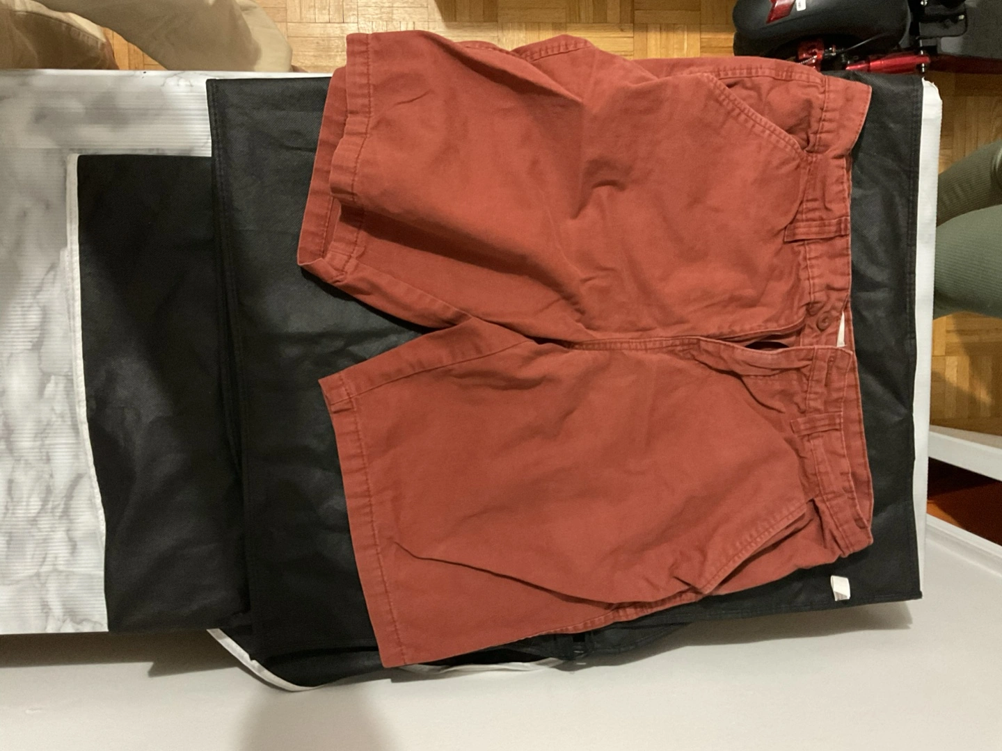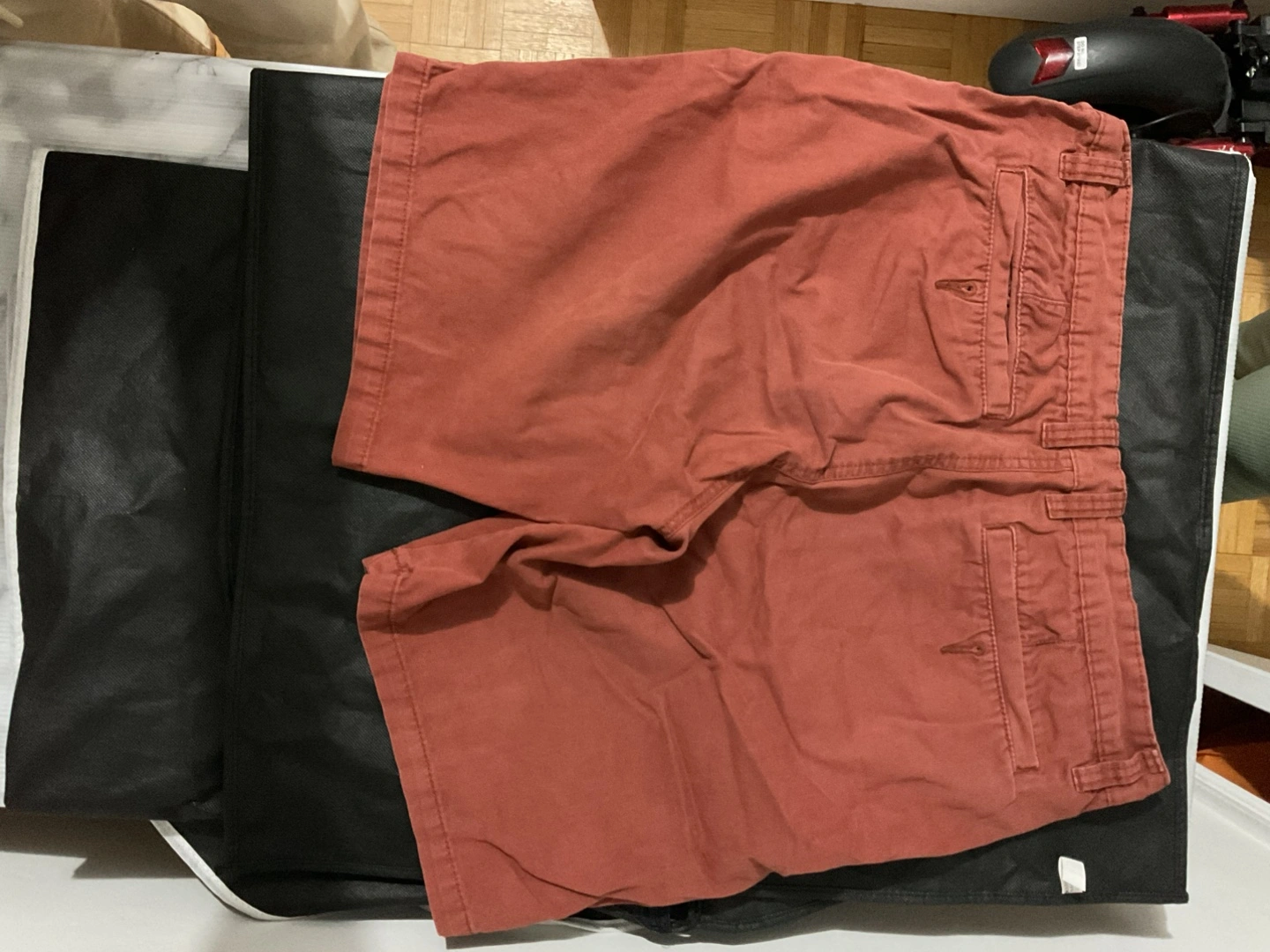 Reddish brown shorts. Two front pockets and two back pockets. A great pair of shorts for your next summer trip.