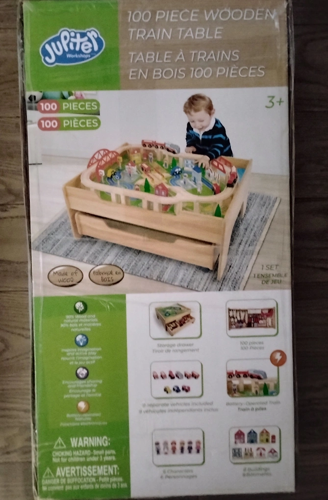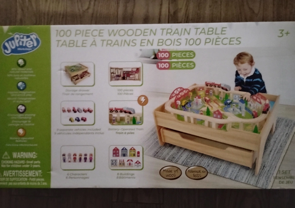 Brand new never opened, 100 piece WOODEN car/train table. Battery operated. Regular price almost $200.. asking $125!