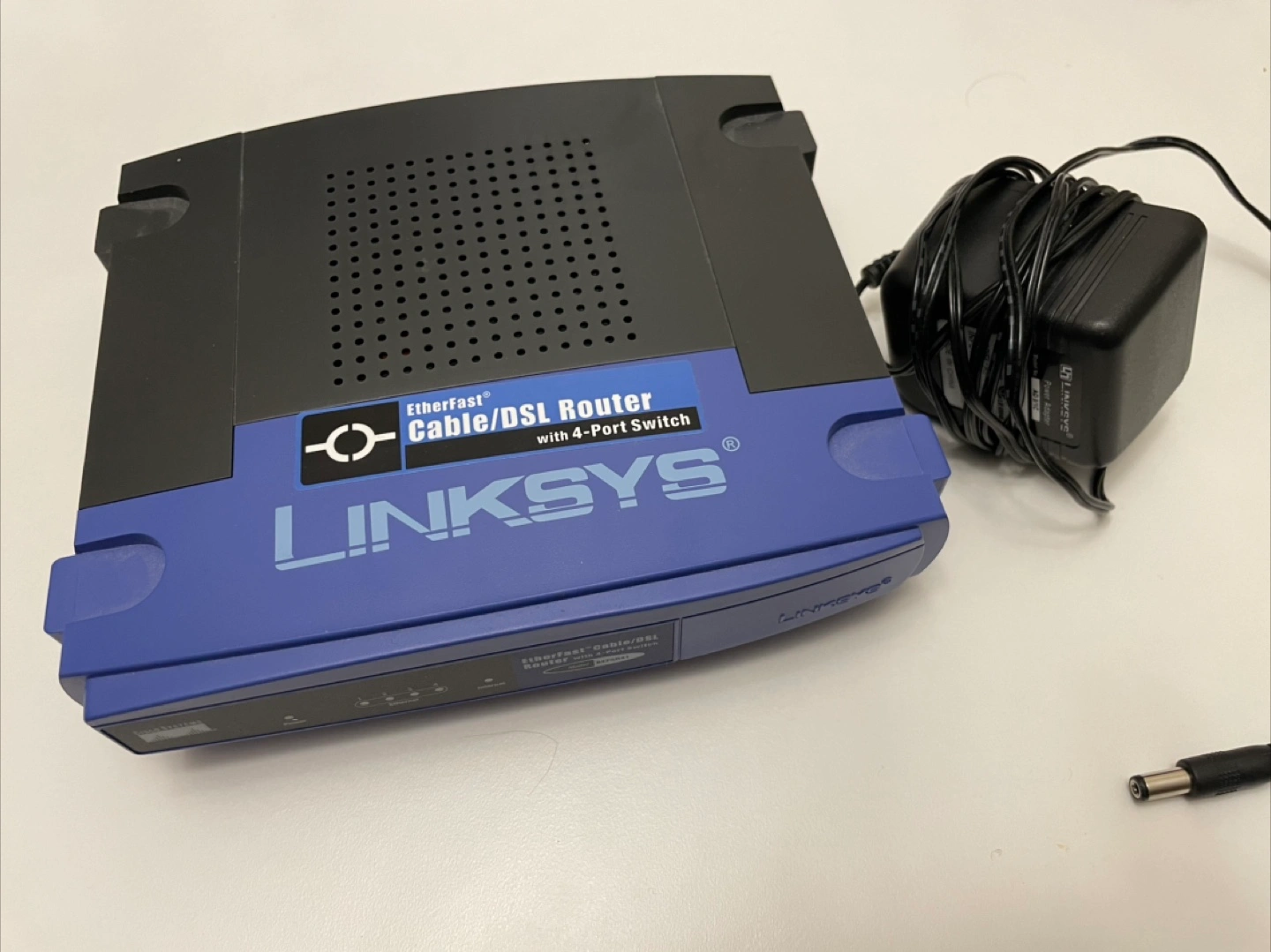 A router with a 4-port switch. Black and blue colour scheme. It comes with a power adapter. This router might just make your browsing experience smoother and calmer.