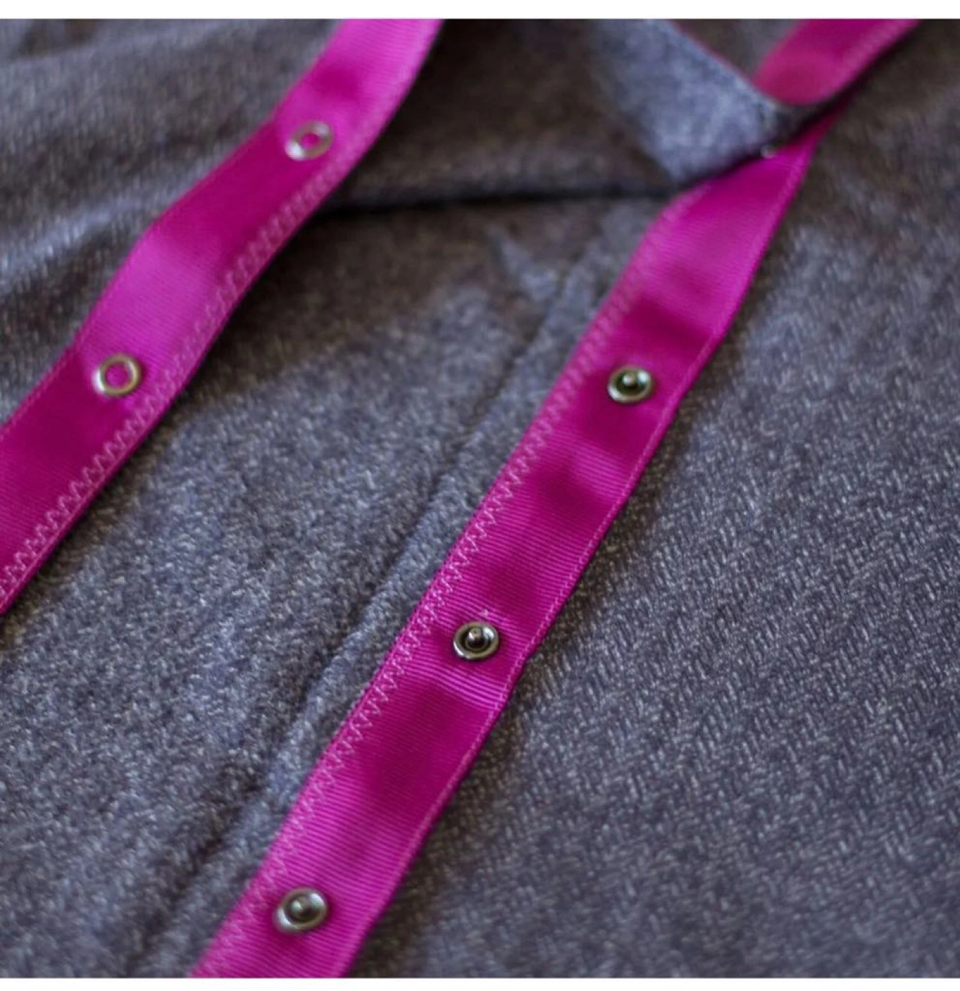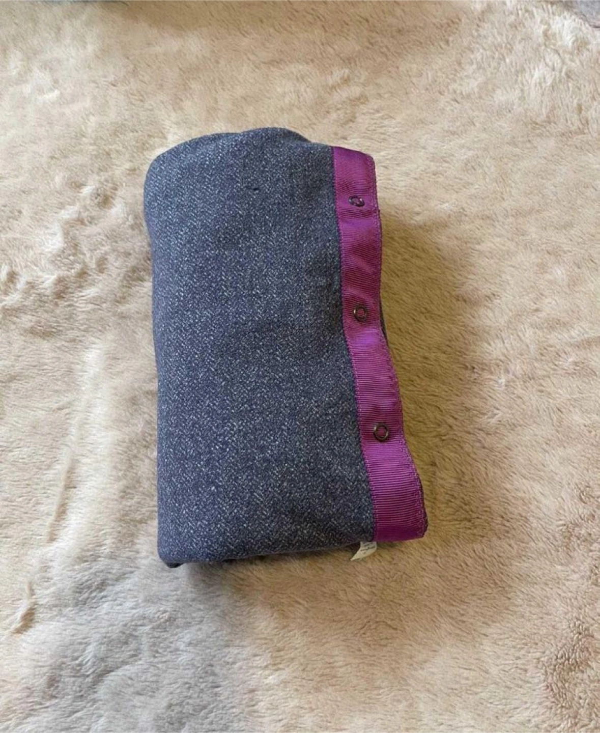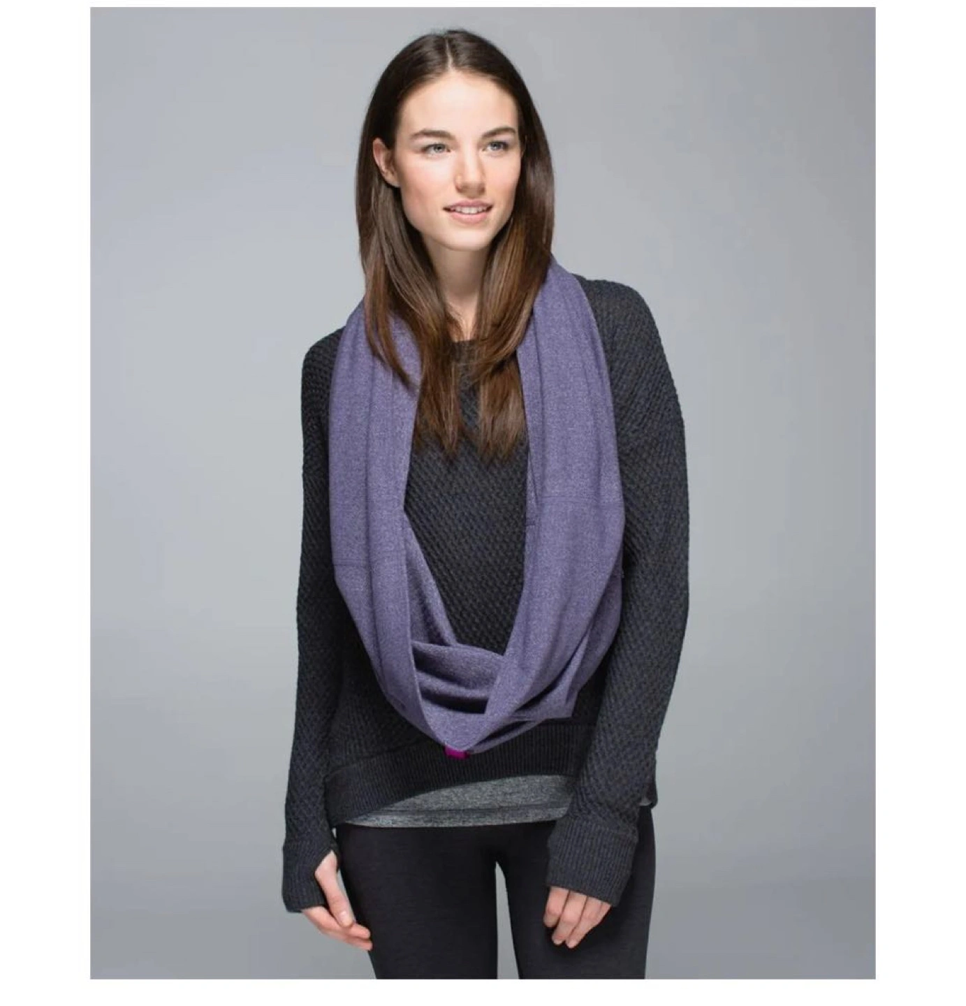 A lovely infinity scarf. Features a purple lining that is buttoned. Soft and cozy, the scarf would make a great addition to your wardrobe. Simply wrap it around your neck to instantly add comfort and style to your outfit. Excellent used condition.