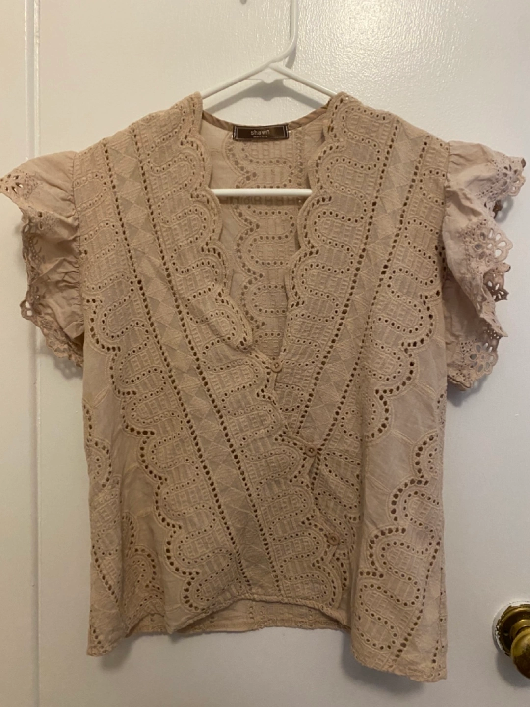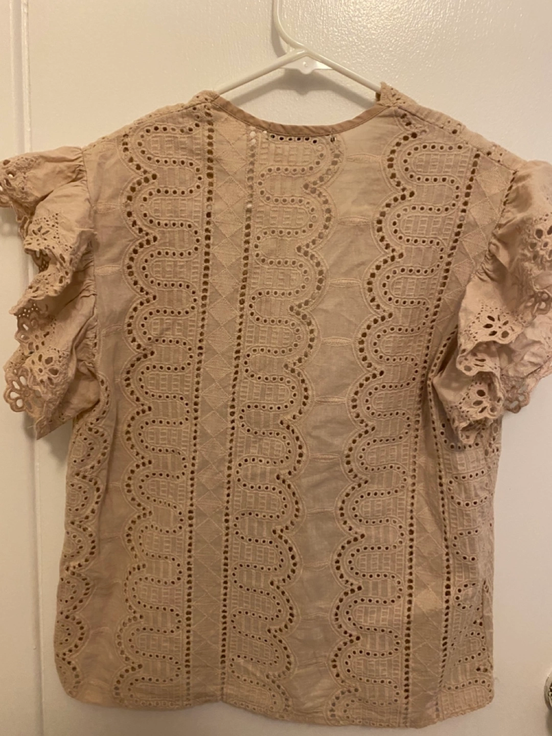 Beautiful light brown eyelet top. Featuring short ruffle sleeves. Size S/M.