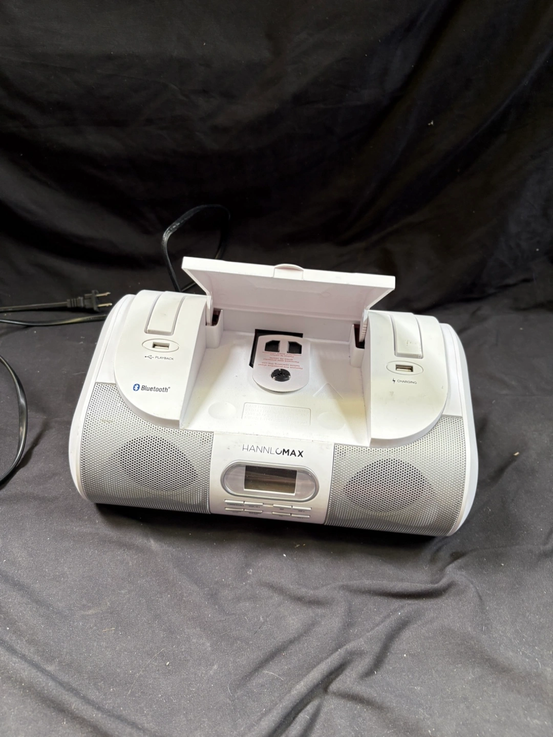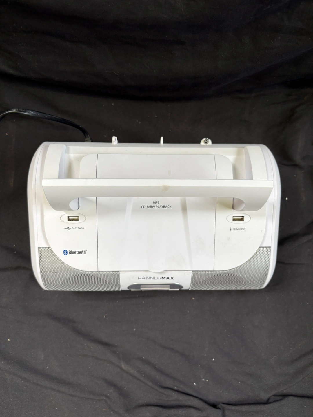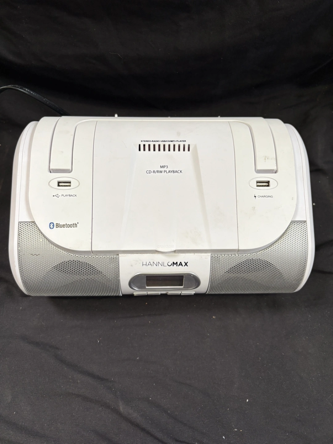 Good condition HANNLOMAX Stereo Radio CD Player A stereo radio CD player. White and silver colour. Featuring Bluetooth and a charging port. Perfect for listening to your favourite tunes while relaxing. $5 Pick up Victoria Park and O’Connor area