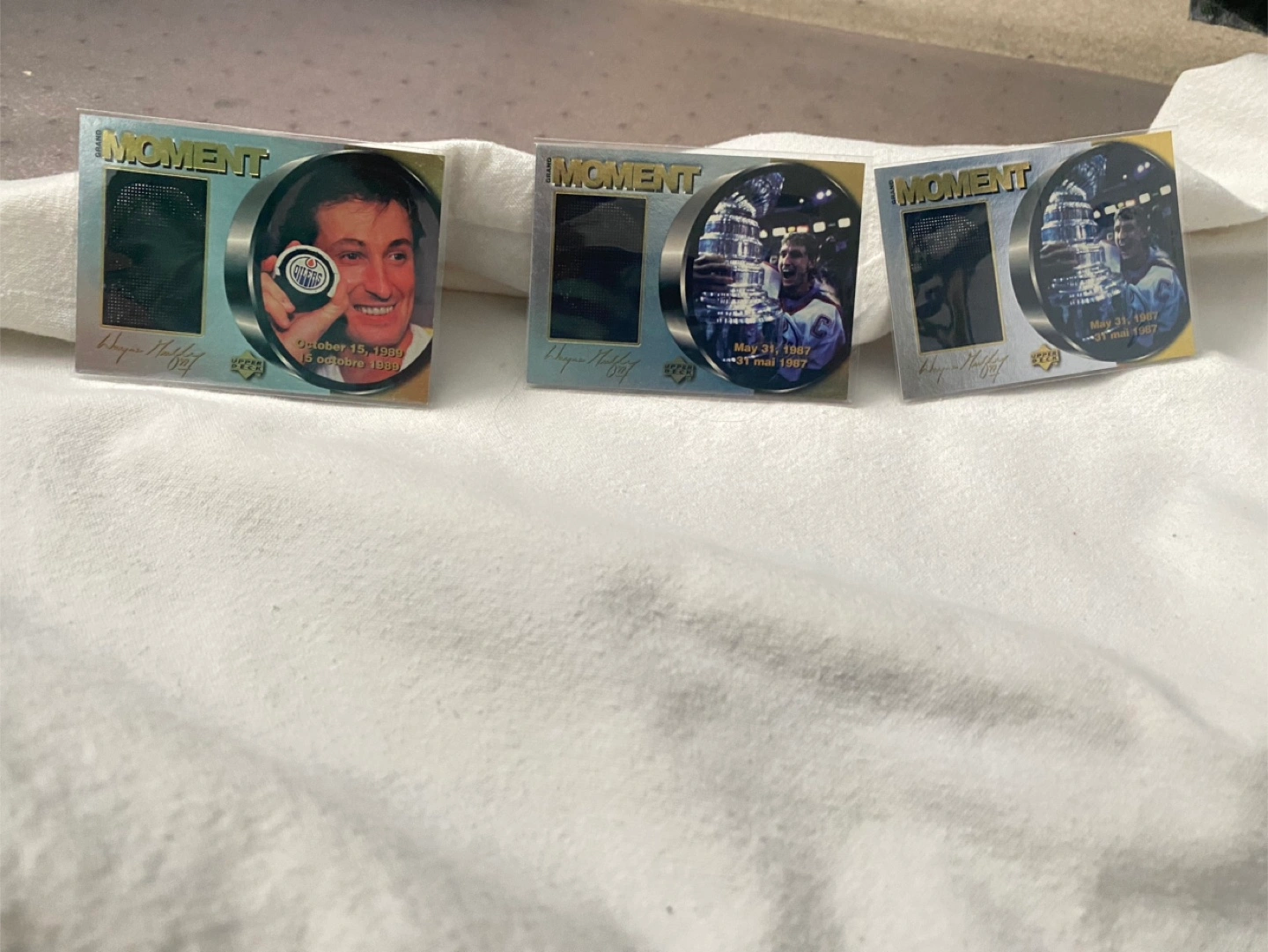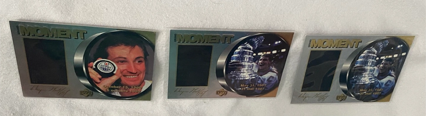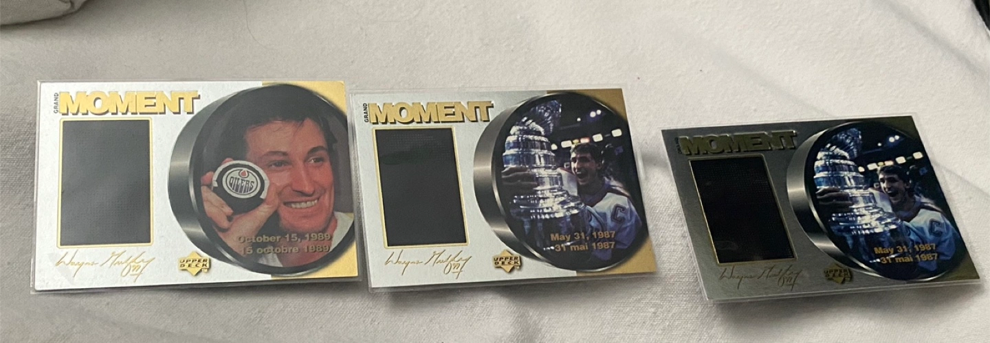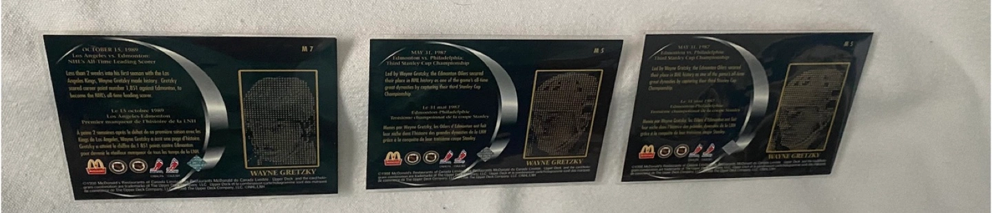 Grand Moment Upper Deck Wayne, Gretzky (McDonald’s) Hockey Cards come in sleeves Sold together $12.00 Pick up Whitby Brock St N & Maple Shipping available at buyers expense