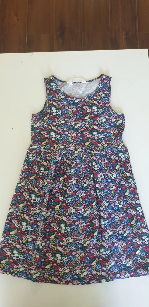 Sleeveless dress with a colourful floral print. Perfect for a sunny afternoon.