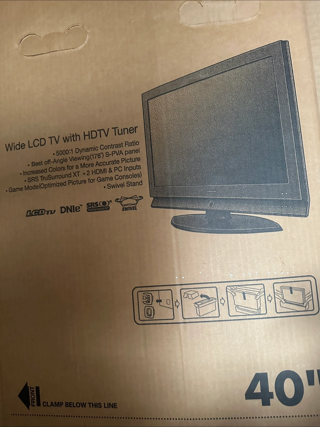 Wide LCD TV. Includes a swivel stand. Offers a dynamic contrast ratio and an accurate picture. Best for a cozy night in with some popcorn. TV great condition . Control remote is ok but might need to replace it . Price is lower now for same reason. To pick up!