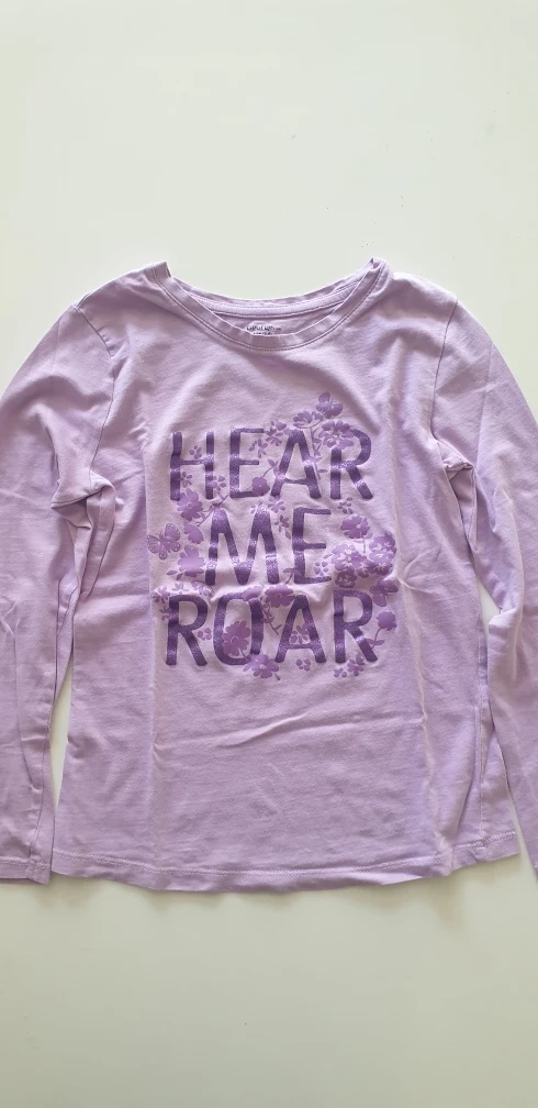A light purple long sleeve shirt. Features the words "HEAR ME ROAR". A perfect shirt for a cozy day at home.
