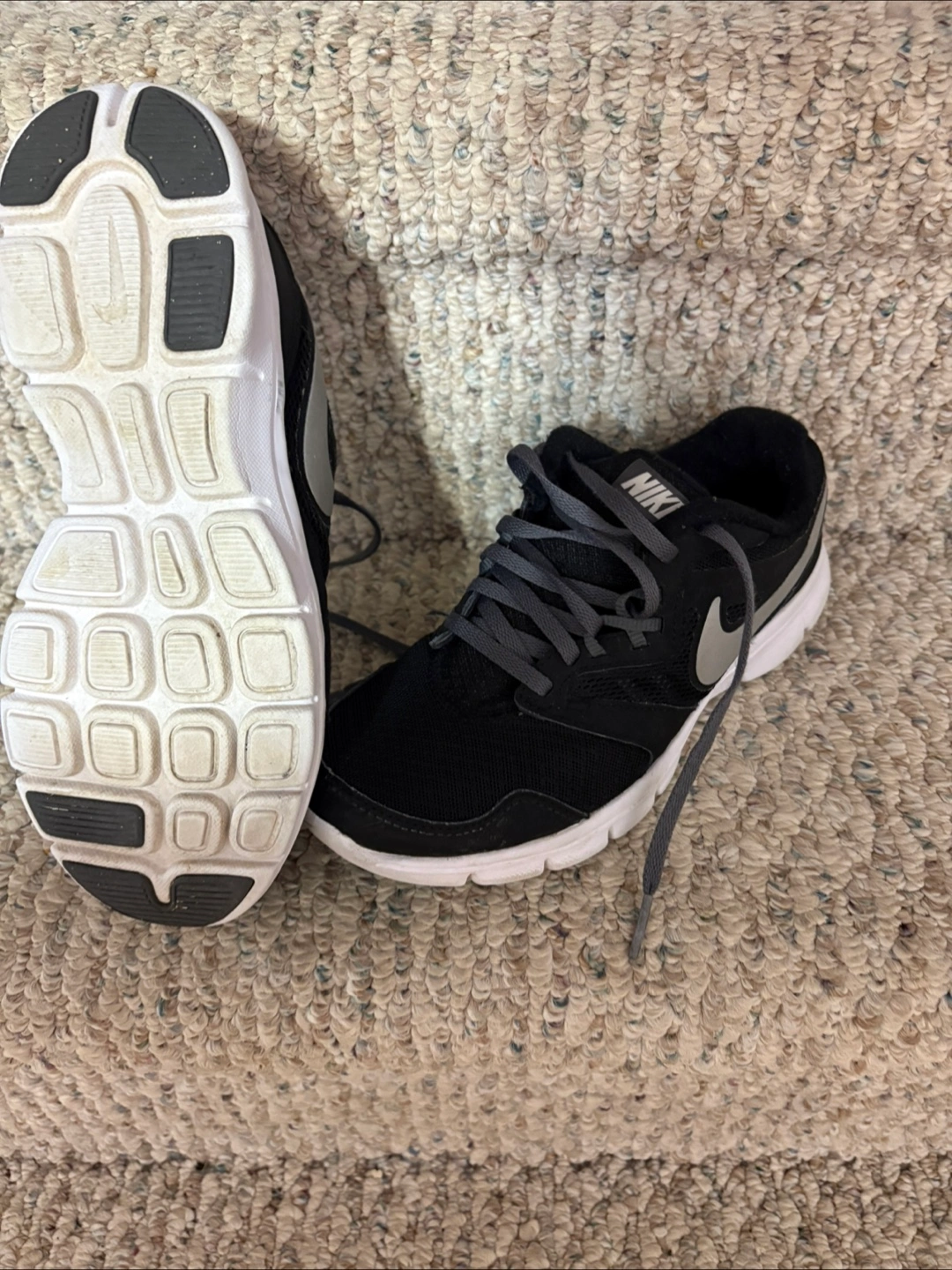 Pair of Nike running shoes. Black in colour, with grey laces. White soles. Used a hand full of times like new $20 youth size 4.5picknuo heartlake Brampton