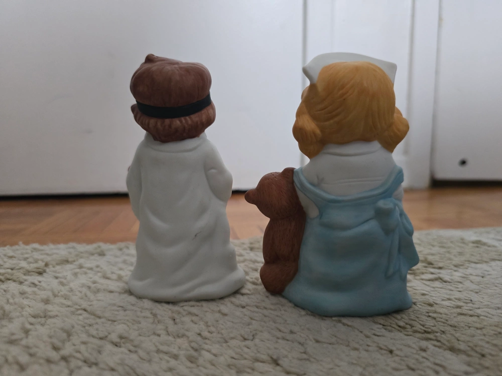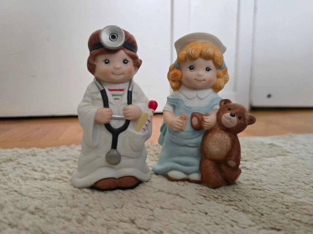 Ceramic figures. One is a doctor and another is a nurse holding a teddy bear. Great collectibles. Made in Taiwan.